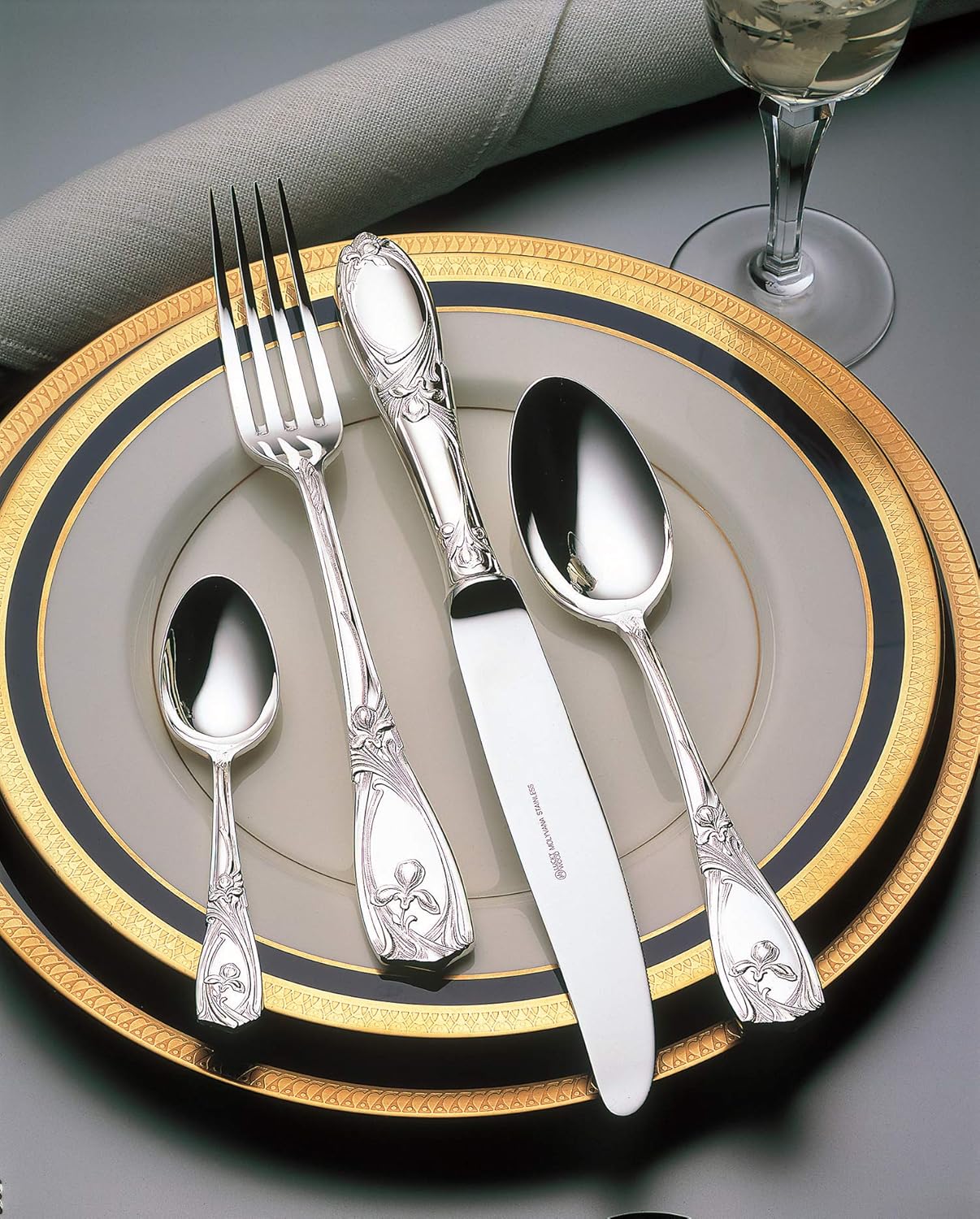 A france-type white silverware that reproduces the elegance of the late 19th century Art Nouveau style. Flowy lines with iris arranged This is a marriage of a table that will make you neat and tidy at a gorgeous night.