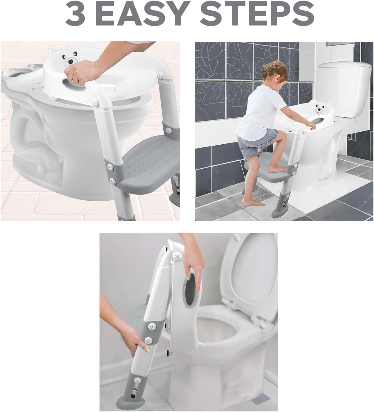 Transform potty training into a fun, safe, and hassle-free experience with the Lulyboo Bear Potty Training Seat with Step Stool for Toddlers. This innovative, all-in-one potty training solution combines comfort, safety, and convenience to help your little one gain independence with confidence. Key Features & Benefits: Adorable Bear Design: The cuddly, child-friendly bear motif makes potty training inviting and less intimidating for toddlers, turning learning into a positive experience. Two-in-One Design Potty Seat + Step Stool: The adjustable ladder and sturdy stool help children reach the toilet effortlessly, promoting independence and proper hygiene habits. Ergonomic Potty Seat: Compatible with most standard toilets, the kid-friendly design ensures comfortable seating that encourages regular use and self-confidence. Non-Slip Safety: Non-slip feet on the step stool provide stability and security on all floor surfaces, minimizing the risk of slips and falls during use. Splash Guard: A built-in splash guard keeps messes contained, making cleaning easier and maintaining a hygienic bathroom environment. Built-in Handles: Easy-to-grip handles on the potty seat promote stability and balance, helping toddlers feel secure as they learn to use the toilet independently. Child-Safe & Easy-to-Clean Materials: Crafted from durable, hygienic materials that are simple to wipe down, ensuring a clean and safe potty training space. Encourages Hygiene & Confidence: Designed to boost self-esteem and promote proper hygiene habits, making the potty training journey smoother for both parents and little ones. Ideal for busy parents seeking a reliable, engaging, and hygienic potty training solution, the Lulyboo Bear Potty Seat with Ladder makes the transition from diapers to independence a breeze. Encourage your child's growth with this adorable, functional, and safety-focused potty training chair-turning an everyday milestone into a joyful experience! Keywords: potty training seat, toddler potty chair, potty training ladder, step stool for toddlers, kids potty seat, potty training accessories, non-slip step stool, potty trainer for boys and girls, hygienic potty seat, toddler bathroom training, child-friendly potty seat, easy-to-clean potty chair, bathroom safety for kids.