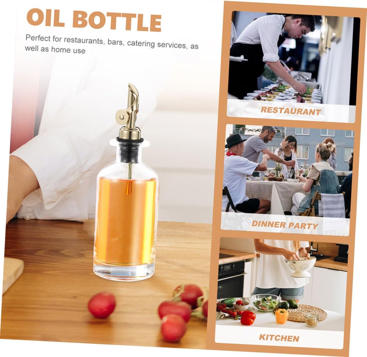 Package List 2 x Oil Bottles Features - Color: Golden -Material:Glass,Stainless Steel -Product Info:Automatic oil-opening and closing pot - Size: 22.80X8.40X8.40cm/8.96X3.30X3.30in -Capacity: 500ml glass dispenser - Excellent for olive oil, salad dressings, cooking wines, syrups, soy sauce, vinegar, milk, juice, water and other liquid condiments cooking oil container. - Fine workmanship, smooth grinding, the oil bottle is easy to use, sealed and practical cooking oil dispenser for kitchen. - Transparent bottle design, can clearly observe the amount. A nice helper for your kitchen oil jars for kitchen. - This oil bottle is suitable for storing all kinds of liquid seasoning, easy and convenient to make delicious food kitchen glass bottle. - The oil bottle is a good helper for cooking in restaurants and kitchens. Smooth sauce bottle, smooth and healthy material, strong and .Goods Descriptionkitchen glass bottle Are you looking for a creative and convenient soy sauce bottle for your daily cooking use? Our production can meet all your requirements with and reliable materials for use.spout oil vinegar bottle Designed with lid, making your cooking process more convenient.dispenser bottle It can hold the olive oil, soy sauce, vinegar, oil and other sauce in the kitchen