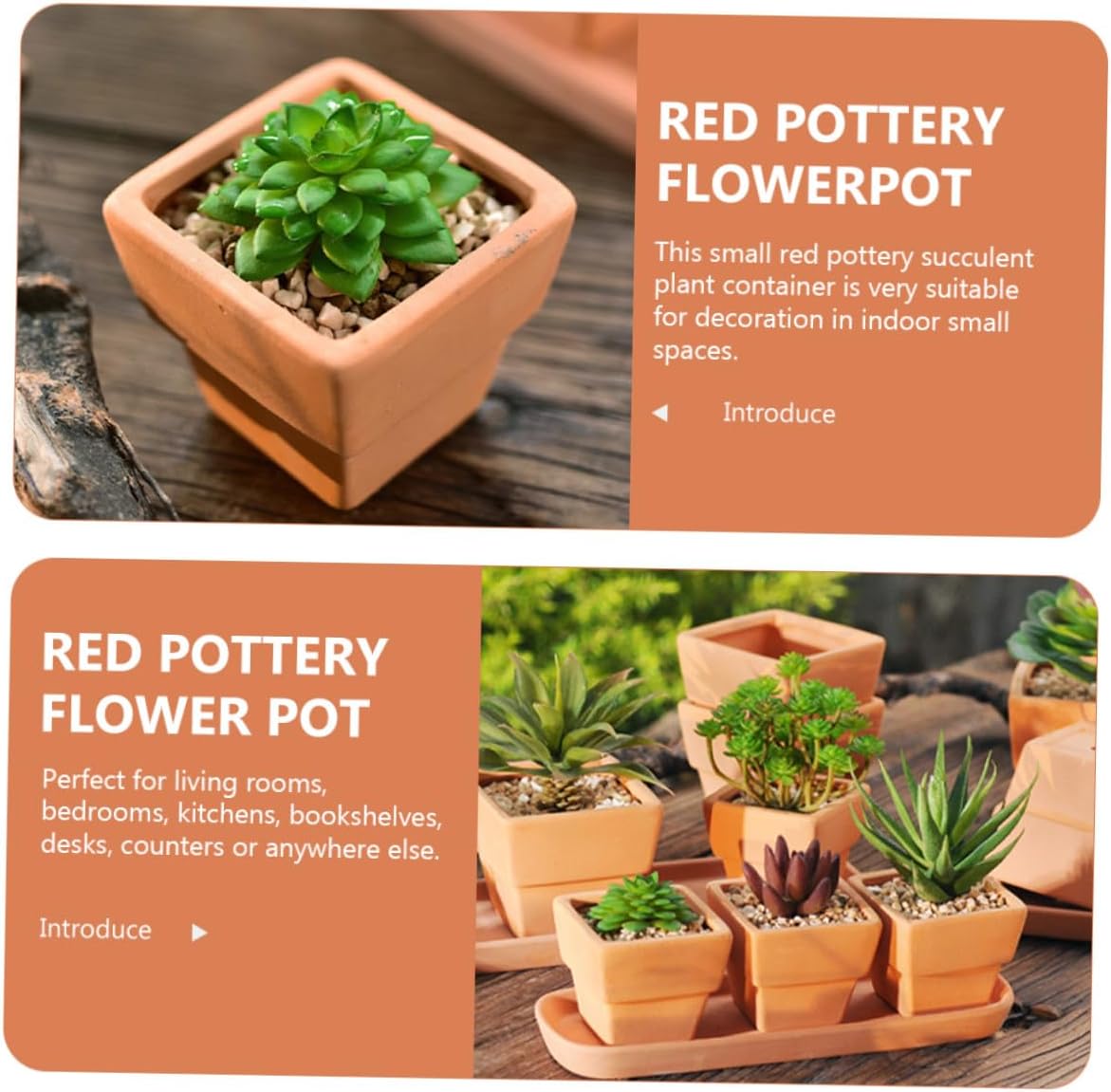 Package List 4 x Succulent Pots Characteristics -Product Info:Red succulent basin -Color:Light Brown -Size:10.00X9.50X6.50cm/3.93X3.73X2.55in -Material:Red pottery - Suitable for a variety of rooms with a variety of tastes, and can be placed in your room, window, shop, kitchen, etc red flower pot. - Perfect for succulent planting use, the planter can be a great container for you to grow plants and succulents mini red pottery pot. - A small drainage hole in the bottom allows water through the soil so your plant stays healthy. square flower pots - Not only a practical succulent or planter or plant container, but also a beautiful adornment for your home square terracotta pot. - This flowerpot will enhance the of your home, creating a pleasing aesthetic look square terracotta pottery.Goods Descriptionsmall terracotta pot square Are you looking for a creative, practical and delicate Succulent Planter? Our product will be your good choice.square planter pot Made of fine craftsmanship and red pottery material, has excellent durability and practicality, can well meet your decoration needs