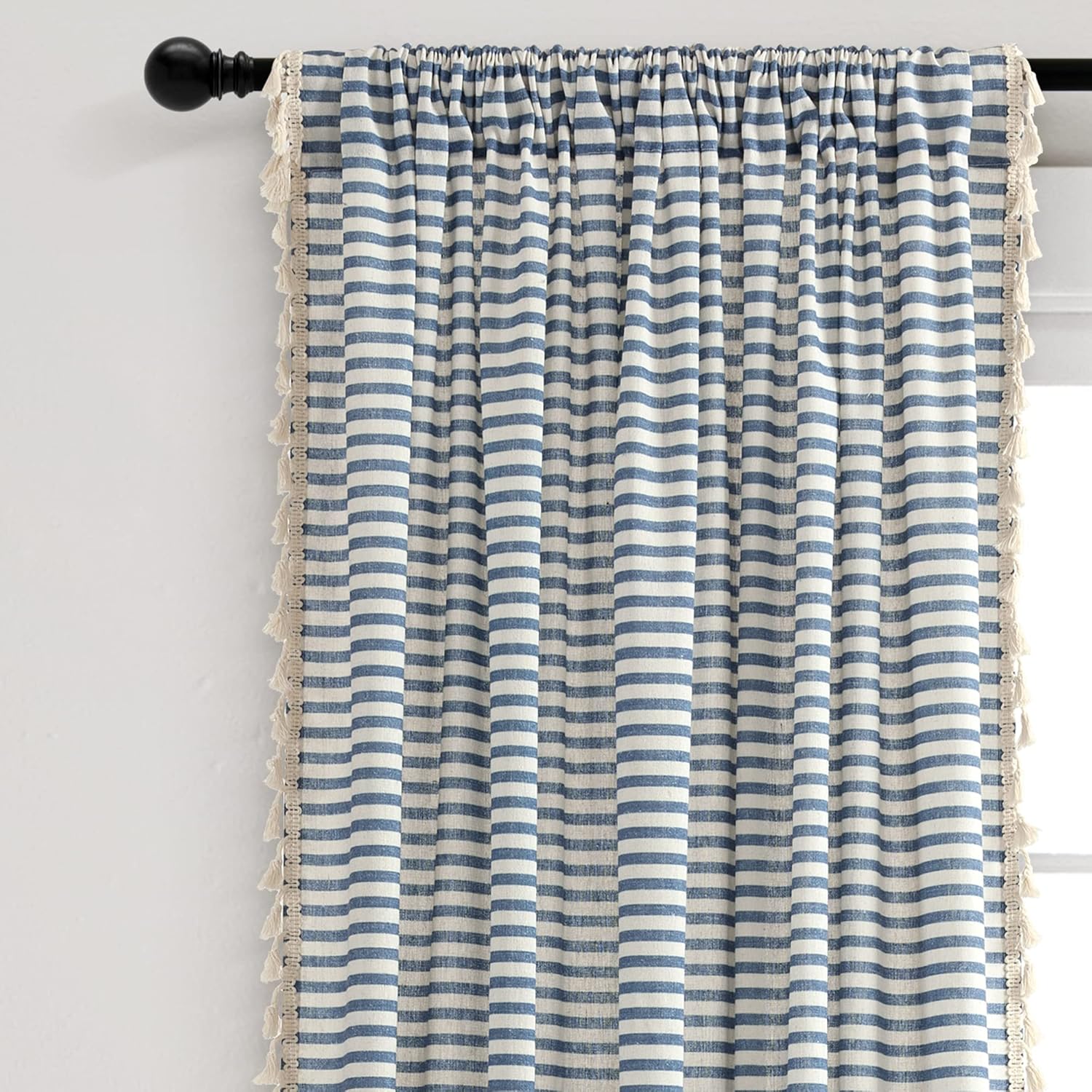| Model Name | Boho Coastal Horizontal Ticking Stripe Tassel Window Curtain Panel Pair |