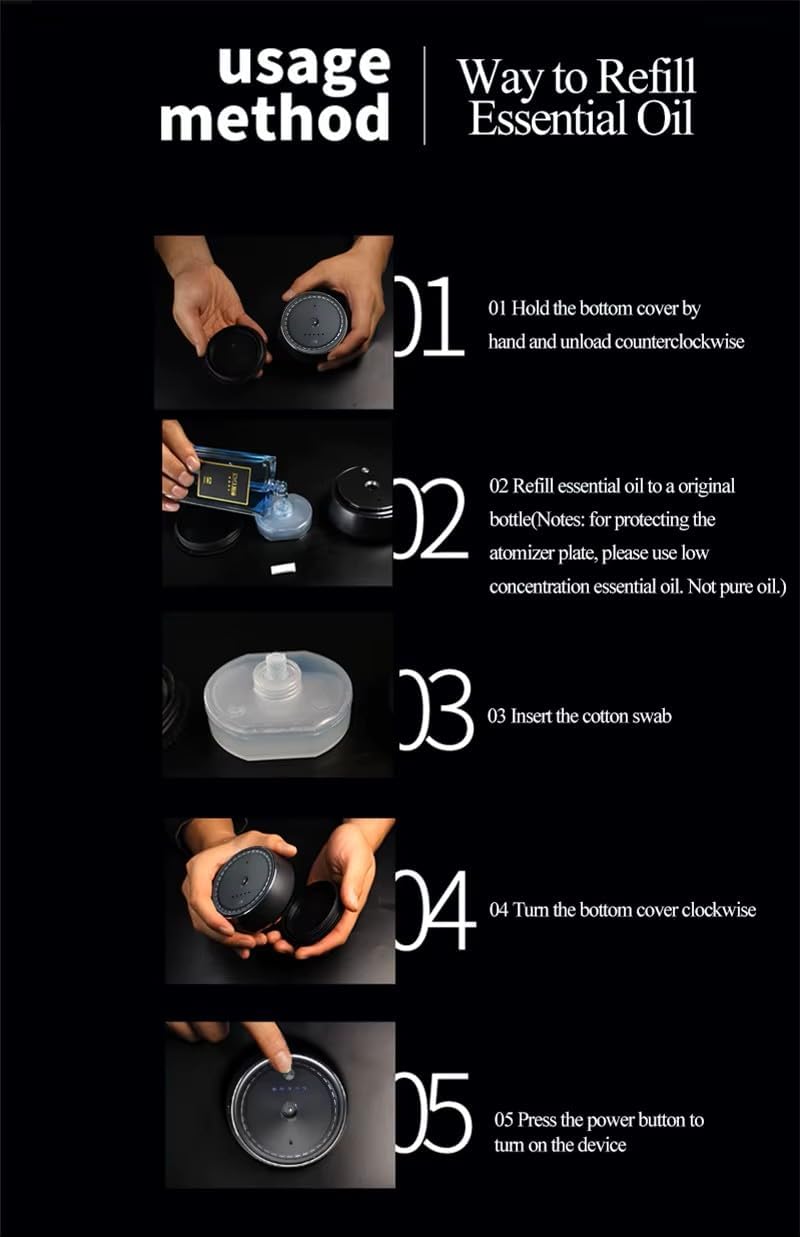 | Included Components | 3M Anti-slip pad, 50ml Essential oil, Car Diffuser, USB C charging cord |