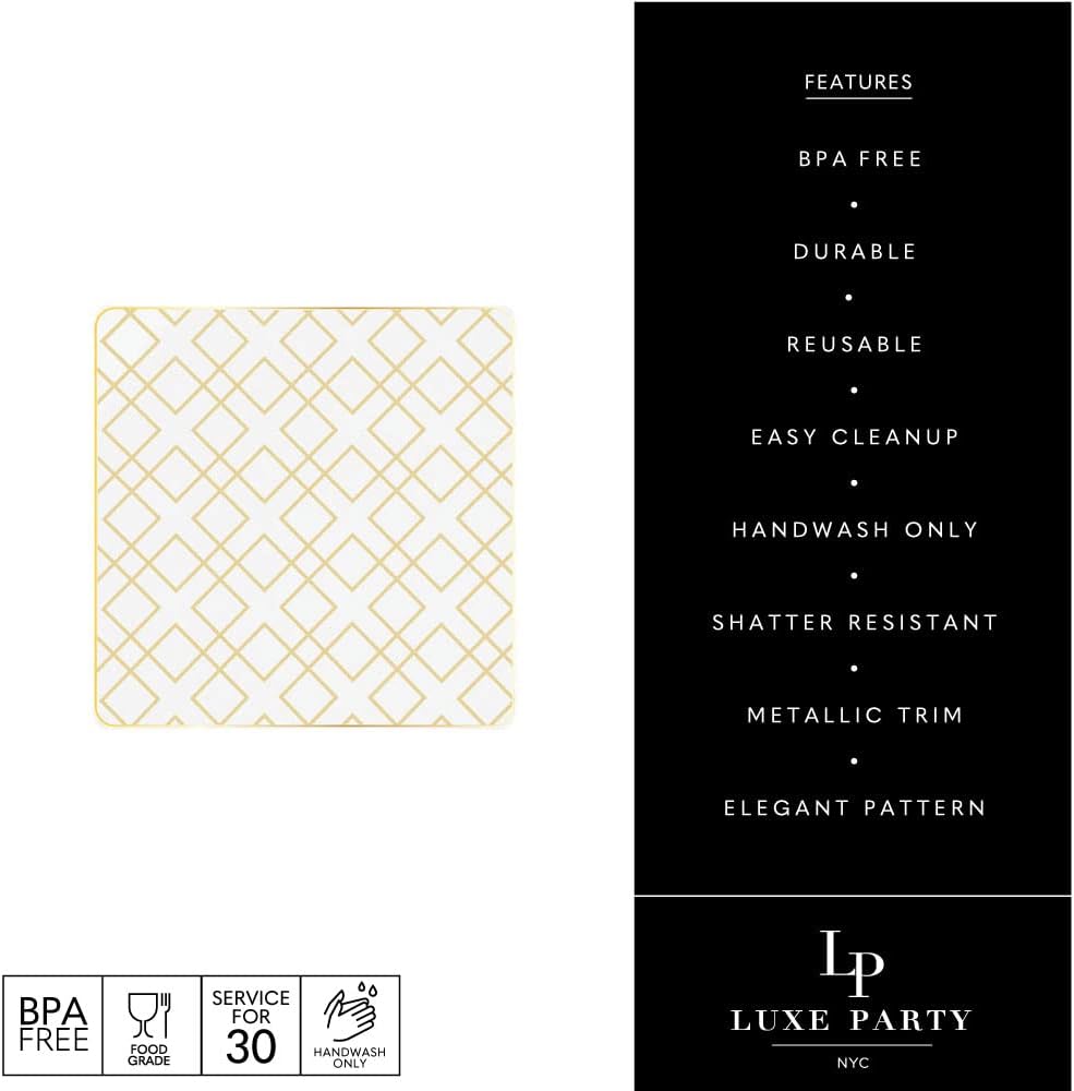 Introducing Luxe Party's line of high-end, plastic, disposable plates, which are both elegant and convenient. They are created with meticulous attention to detail, to redefine the image of disposable tableware. Made from polystyrene, they feature a combination of strength, durability, and aesthetics. The smooth finish creates a lavish dining experience and adds a touch of sophistication. These plates are designed to impress and elevate any table setting. They are ideal for extravagant events, posh parties, casual gatherings, and even outdoor picnics. Our high-end disposable plates effortlessly combine pragmatism with fashion, allowing you to indulge in fine dining without the hassle of cleanup. Serve your culinary creations with confidence, knowing that every guest will be treated to a remarkable dining experience.