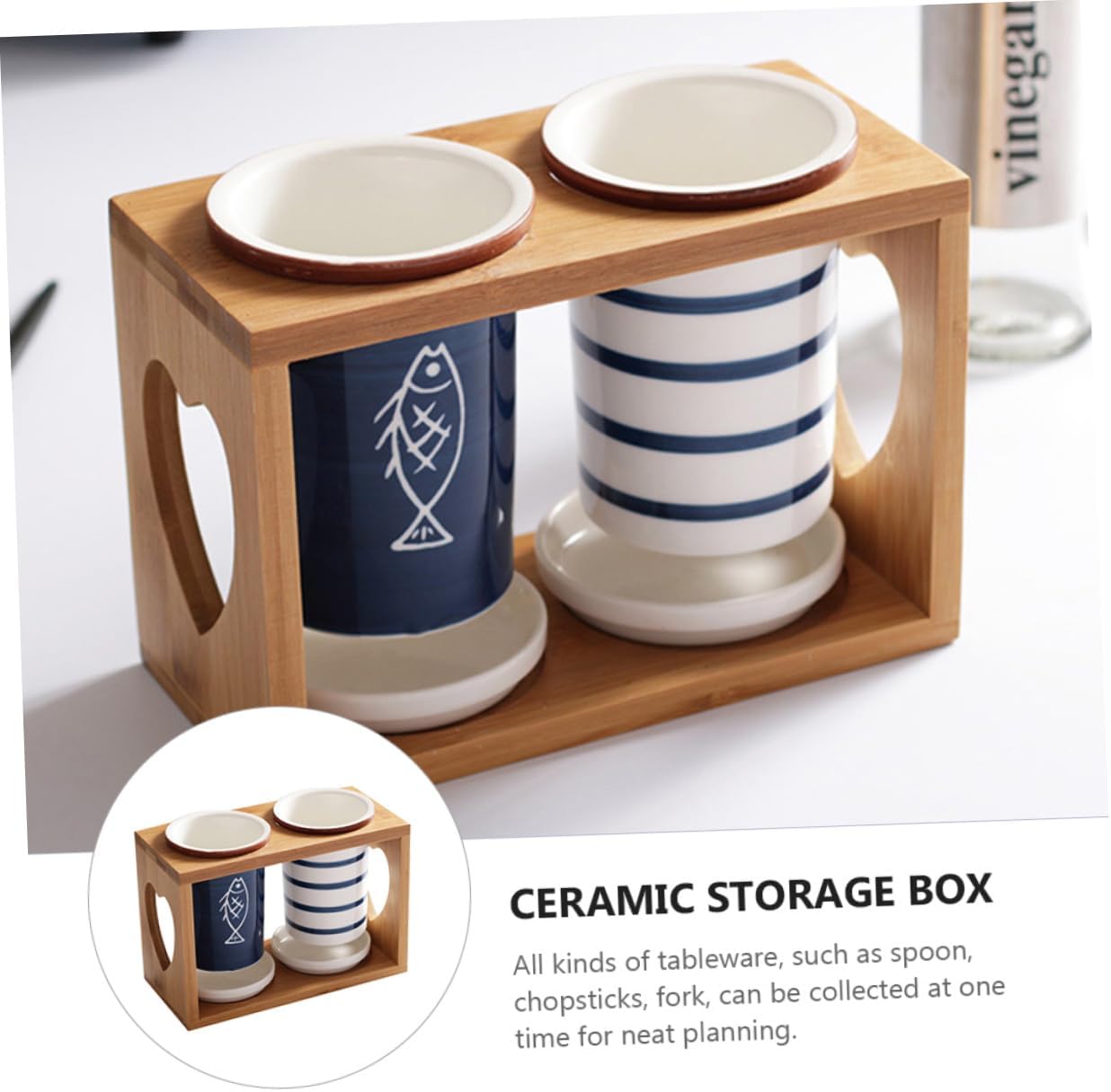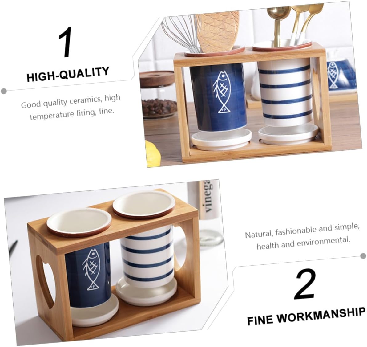 Package List 1 x set storage container Characteristics -Color:Chocolate cutlery holder for countertop -Size: 20.80X14.20X9.50cm/8.17X5.58X3.73in -Material: Ceramic wooden - Made of premium ceramic material, and for a long time use kitchen storage rack. - The product is meticulously made and it is wonderful for daily life cutlery organizer. - Fine workmanship and unique appearance its popularity. - Perfect for storing and draining your tableware. - Simple and generous product appearance design.Goods Informationcutlery holder for countertop This is a kitchen storage canister, which can store different cutlery, such as spoon, chopsticks, fork, etc.kitchen storage is unique and creative in daily use.cutlery organizer It is made of material, which is and for use. A nice storage container for you