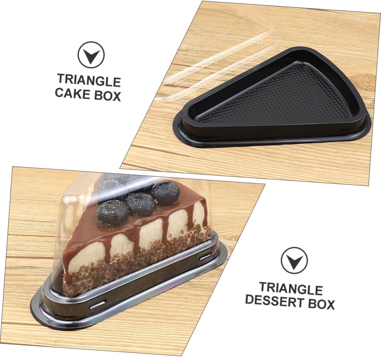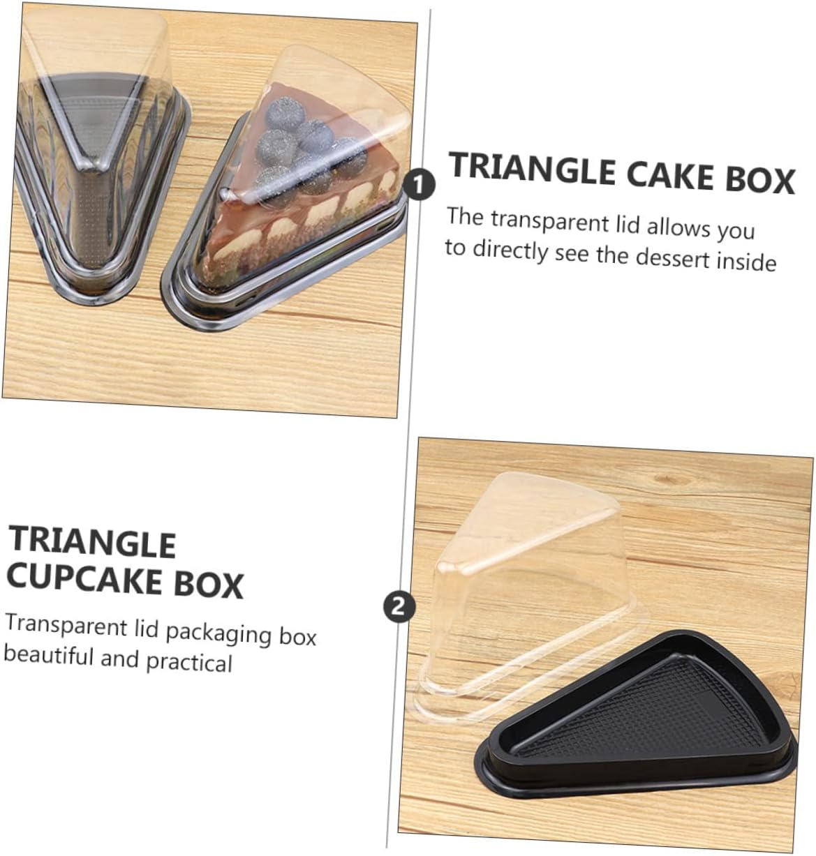 Package Include cake boxes Characteristics -Size: About 14x11x7.5cm/5.5x4.32x2.95 inch triangle box for cake. -Material: PET cake slice container. -Using food grade PET material, and no harm triangle container. -The groove design of the base is non-slip and better protect food triangular cake box. -The transparent lid allows you to directly see the dessert inside cupcake container with lid. -Transparent lid packaging box, beautiful and triangle food container. -The buckle design, the lid and the bottom fit tightly, and the sealing effect is cupcake packaging containers.Goods Descriptiontriangle dessert container Each box features a transparent cover and can just put 1 cake in.cupcake box It is also for storing cheesecake, mousse cake and other desserts for home and bakery use.triangle container These are triangle cake wrapping boxes, which are made of material for to use