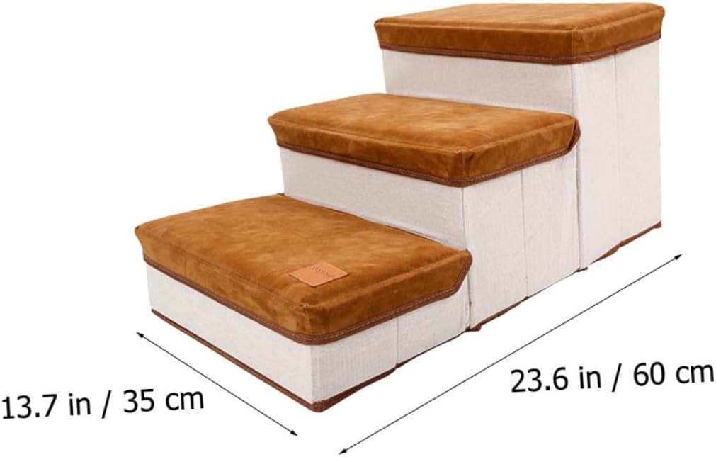 Package List 1 x pet stair Characteristics -Product Info:Dog stairs - Size: About 60.00X35.00X30.00cm/23.58X13.76X11.79in - Color: Brown - Material: Lint and cotton cloth - Easy to carry around; help your pets easy to reach their favorite places Puppy Stair. - Perfect for small and medium size dogs, and cats. - A nice home or pet shop pet supply Dog Stair. - Streamlined design is perfect for pet; and it is easy to assembly without tools Stair for Puppies. - Made from , durable to use.Goods InformationDog Stair Suitable for home, pet shop.Foldable Pet Stair Pet will be easy to reach their favorite places, jump and play.Dog Ladder This pet stair is made by , durable, practical and .Pet Supplies You can place it anywhere you like, Cat and dog will like this stair
