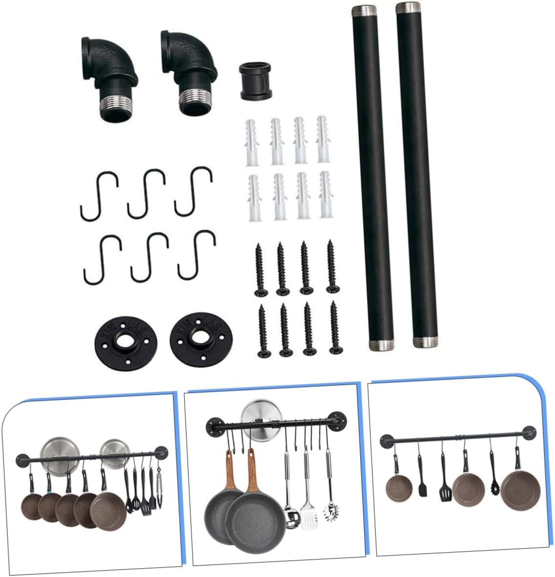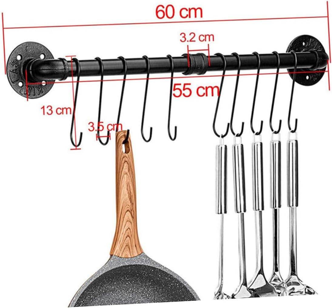 Package List 2 x rods 2 1 x connector 2 x bases 8 x screws 8 x expansion tubes 6 x hooks Features -Product Info:Pot lid stand - Size: 60.00X13.00X5.00cm/23.58X5.11X1.97 inch. - Color: Black. - Material: Iron. - Hooks that are nailed into the wall are more practical and have greater bearing capacity than self-adhesive ones wall mounted pan rack. - Fit for frying pan, camping cookie, skillet, cooking utensils, farmhouse pots and pans, etc Hanging Pot Pan Organizer. - It can not only be hung in the kitchen as a pot and pans organizer and a towel rack in the bathroom.It can also be installed on the balcony as a plant shelf with hanging bar hanging rack for kitchen utensils. - Keep your utensils where you can easily reach and cook like a professional chef hanging pot holder. - and fine workmanship make this storage rack and can be used for a long time.Goods DescriptionHanging Pot Pan Organizer Suitable for kitchen, bathroom, bedroom and other places you need.pot hanger This is a storage rack, which is made of iron , and can be used for a long time.wall utensil hanger for kitchen The storage rack with hooks can store various items, such pot, pot lid, spatula, washing cloths and etc