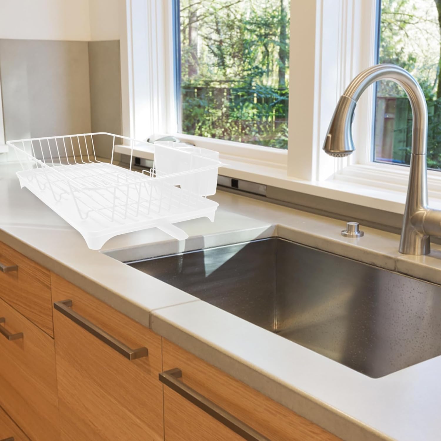 Features- Color: White.- Material:PP, iron.- Size: about 42.00X31.00X13.00cm/16.51X12.18X5.11in .Package Including1 x bottom tray.1 x iron wire rack.1 x double-compartment box.