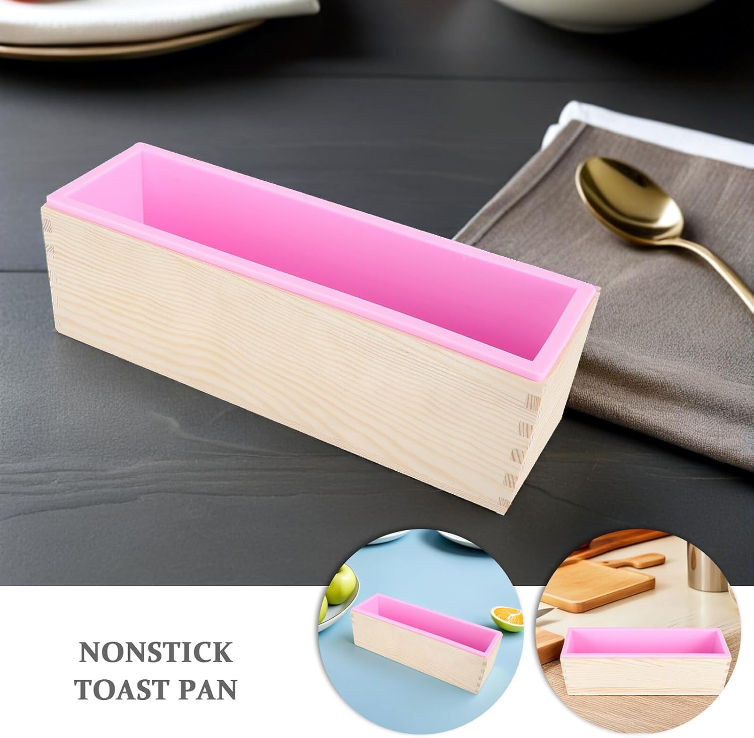 Package List 2 x bread pans Characteristics -Multipurpose utility: serving as a bread baking pan, toast box with lid, or artisan soap loaf wood box, this wooden baking mold adapts to a wide variety of kitchen and DIY applications silicone loaf pan -Material:Wood, Silicone -Size:28.00X9.00X8.20cm/11.00X3.54X3.22in -Efficient unmolding: this bread baking pan with lid lets you effortlessly remove bread, cakes, and soap thanks to the effective toast mold with lid mechanism, simplifying your workflow bread baking mold -Robust wood & silicone: the bread tin with lid is made with steadfast wood and safe silicone, allowing you enjoy a nonstick loaf pan experience for countless baking cycles japanese bread pans -Reusable solution: both bread tray with cover and toast loaf pan are highly reusable, making them great for DIY bread loaf mold, soap mold, and any baking need for sustainable living bread loaf pan with lid -Color:Assorted Color -Comprehensive baking: whether you’re using as a baking bread pan, cake loaf tin, sandwich loaf pan, or wooden breadbox, this square loaf pan provides versatility for recipes and crafting toast mold -Product Info: Wooden toast moldGoods Informationnonstick cake mold Bake delicious breads or create handmade soaps using this toast box with cover made from wood and flexible silicone.loaf pans for baking The multipurpose wood box design acts as a reliable bread mold for baking as well as an effective artisan soap loaf wood box, meeting needs in home baking, crafting, and storage with a non-stick loaf pan finish