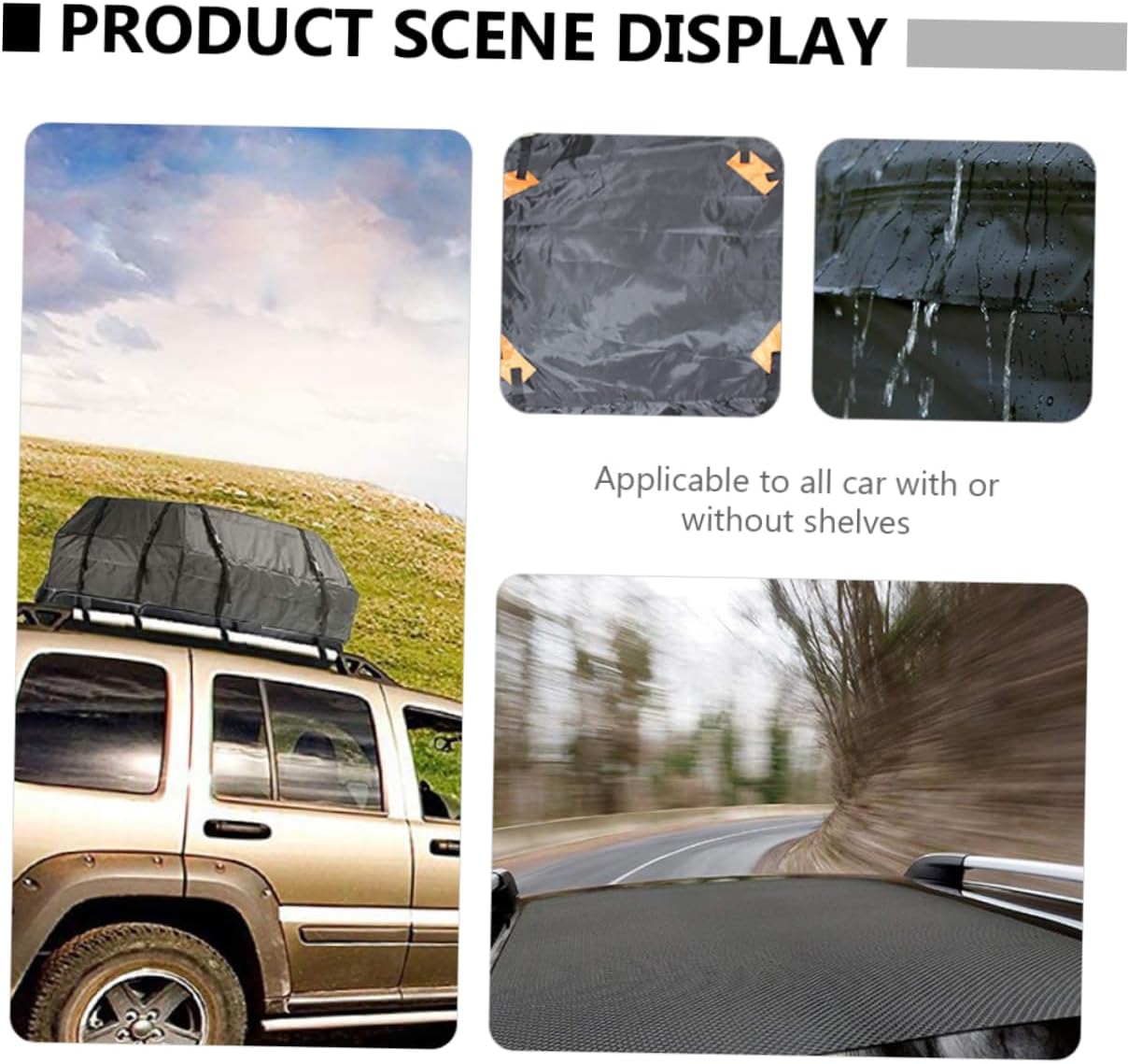 Package List 1 roof bag 1 x non-slip mat Features -Size: About 112.00X87.00X44.00cm/44.02X34.19X17.29inch Vehicle Cargo Carrier. -Color: Black Vehicle Cargo Roof Bag. -Material: 420D Oxford cloth Waterproof Rooftop Cargo Bag. -It is made with superb craftsmanship, with simple design and practical functions, which can bring you of convenience Auto Roof Bag. -Reasonable structure, easy to fix, with anti-skid pad, stable and reliable, you can rest assured to use it for storage Car Rooftop Cargo Bag. -Waterproof and wear-resistant, it can protect your luggage from rain, gravel, snow, wind and sun on the road Car Cargo Roof Bag. -This roof bag has a large capacity and is large enough to hold of the items you need Rooftop Cargo Bag for Car. -It is made of durable and practical 420D Oxford cloth material, which will not be easily damaged and can be durable for a long time Vehicle Rooftop Cargo Bag.Goods InformationCar Cargo Roof Bag The ingenious design enables it to be firmly installed on the roof of the car, bringing you more storage space, and your choice for vehicle storage tools.Vehicle Cargo Roof Bag This car roof luggage bag with anti-skid pad is made of durable and wear-resistant 420D Oxford cloth material, waterproof and practical, with excellent texture, and .Car Roof Cargo Holder your choice for car storage bags