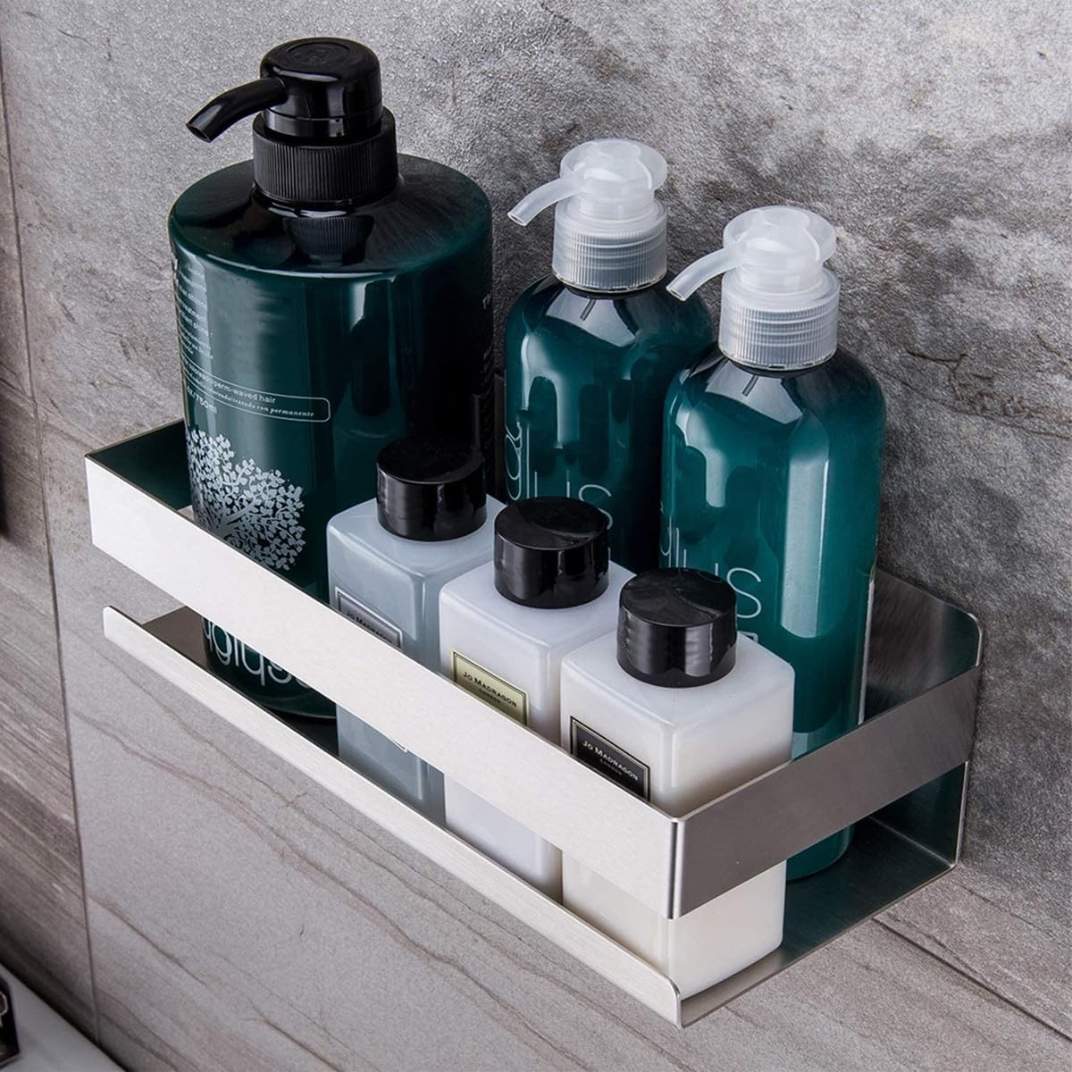 Package List 1 x wall storage shelf Characteristics -Product Info:Wall-mounted storage rack - Material: Stainless steel. - Size: About 23.00X10.00X8.00cm/9.04X3.93X3.14inch. - Color: Silver. - Punch free design, easy to install, no need other tools metal wall shelf. - Breathable design is easy to dry and easy to clean it wall storage rack. - Suitable for bathroom, kitchen and other place you need wall storage shelf. - High fence design will prevent items from falling kitchen metal shelf. - Make your toiletry in order and you can easily take bathroom wall rack.Goods Informationshower metal must be one of your .bathroom metal shelf Do you want to buy a bathroom organizer rack or kitchen organizer rack? Help you keep messy things in order.stainless steel wall shelf With modern appearance, suitable for you to storage your items in an organized way.wall storage rack You can make shower gels, bottles in a tidy way