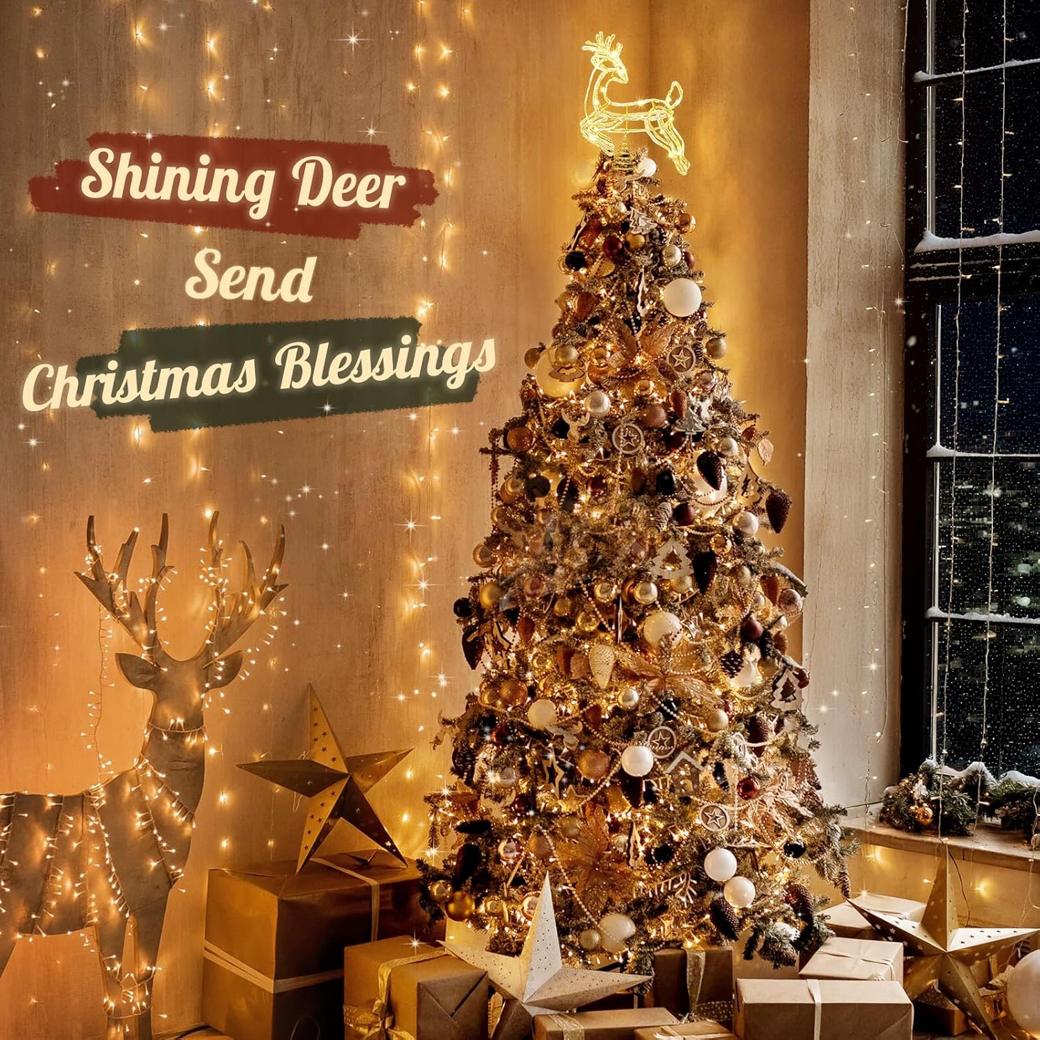 Luxspire Christmas Tree Topper Decor Product Information: Easy to Operate: Remote Control + 3M USB Cable Function: 8 Lighting Modes + 4 Brightness + 6hrs Timer Package List: 1*Christmas Tree Topper 1*Remote Control 1*USB Control
