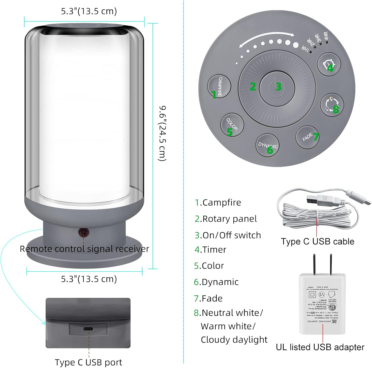 More Information: Specifications:Luminous Flux: 200 lumens Color Temperature: Cloudy daylight 8000K/Neutral white 4300K /Warm white3000K Power Supply -Input Voltage: AC 100–240VOutput: 5V DC 2AWattage: 6.8WProduct Size: 6.5"Dx 6.5"W x 11"H Packing Includes:1 x Led Table Lamp1 x Remote Control1 x UL Listed USB Adapter 1 x Type C USB Cable1 x User ManualTIPS: -Timer SettingYou can preset 1,2, 3 or 4 hours timer on top of light or on remote, then the Night light can be switche off automatically. If you want to cancel the timer setting, just press the remote control ON button or press the timer button 5 times to cancel the setting then the LED timer indicator light will be off. Good for energy saving and using it in baby’s room. Not a cordless table lamp No built-in battery, not rechargeable. Powered the table lamp by AC adapter with Type-C USB cable (both are Included). Connect the LED dimmable lamp with your laptop or USB Power bank, you can transform it to be a portable lamp for your entertainment, work, camping or other outdoor events.-Memory of last brightness & mode setting Lights will default to last brightness & mode setting when you turn lights off & on again. If you want to adjust the brightness level of lights again, please press (+)/(-) buttons on remote or rotate the rotary panel on lights.-Don't need to change the bulb It is a LED table lamp, you will never need tochange the bulbs. The LED lifespan is over 30,000 hours and enough for almost10 years of daily use. Meanwhile, all products quality problems will only send a free replacement without asking questions.