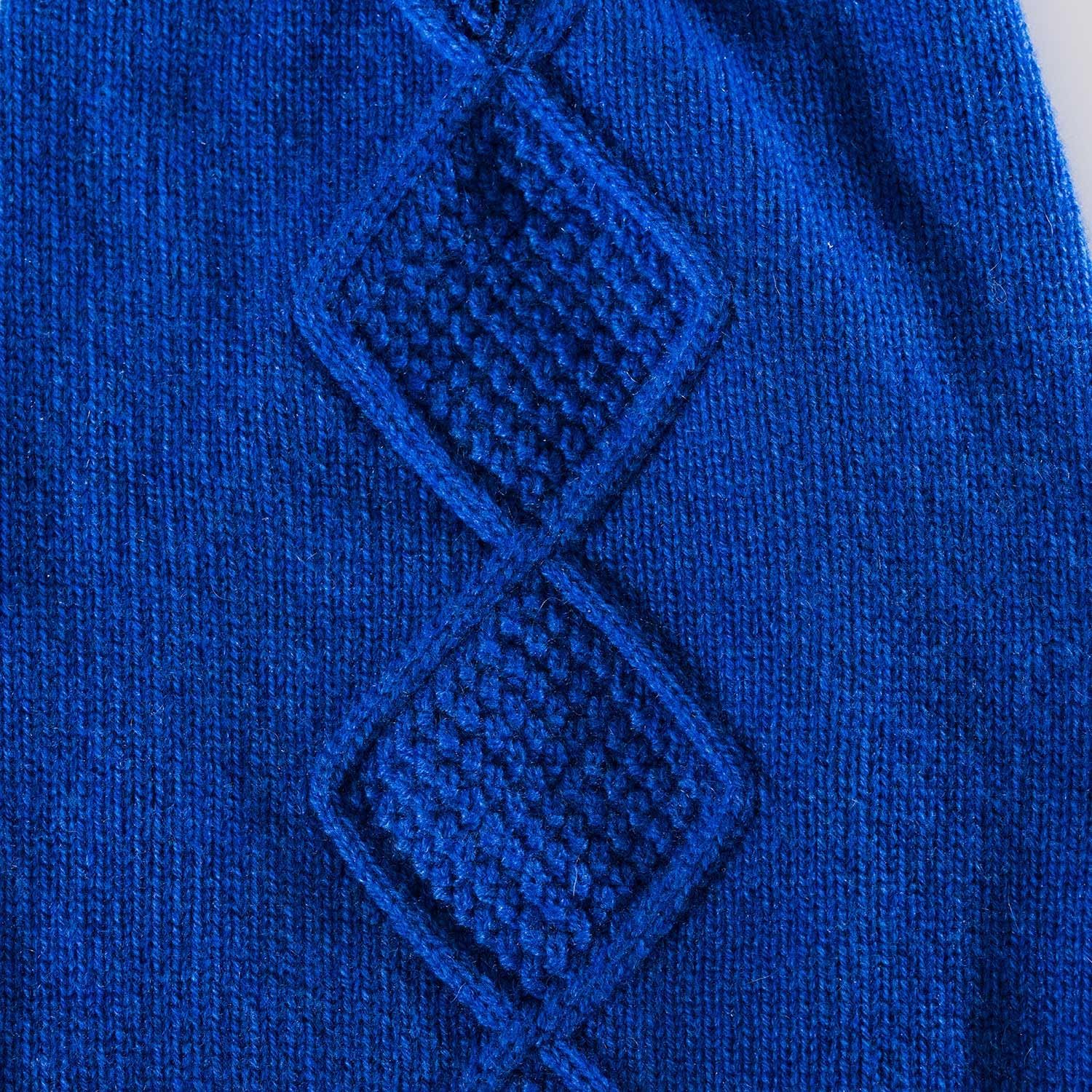 Wrap your dog in warmth and elegance with this luxurious 100% Cashmere Dog Sweater. This 3-thread cashmere sweater, handcrafted in Italy features handmade finishes in a rich royal blue hue, a classic diamond cable knit design and it's finished with ribbed edges for a tailored yet comfortable fit. A discreet, reinforced opening at the back allows for easy leash attachment to a harness or collar. Soft, breathable, and irresistibly cozy, it's perfect for chilly walks, everyday outings, and stylish occasions. A reinforced slit allows seamless leash access to any collar or harness—keeping your dog warm, cozy, elegant, and walk-ready. What's in the box: VeroAmore branded box, "San Marco" style Cashmere Dog Sweater, a Natural cedar ring for cashmere care, a card holder with Thank You note and care instructions.