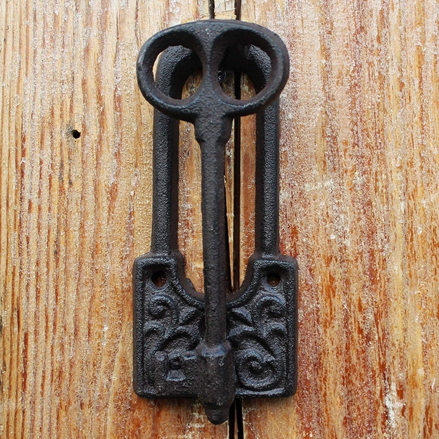 What's better than our antique door knocker with key decoration to welcome your guests Cast from the original molds,our authentic foundry cast iron is sure to impress with resonant knocks that make big statements on front doors. Features: Sturdy vintage cast iron Classic,vintage,love key sculpture design Suitable for indoor / outdoor / townhouses / neighborhoods / cabinet / wardrobe / apartments / drawers / wardrobe / other use of furniture American modern rustic design furniture As a towel rail / locker that can be opened or lowered with handle / hinges for doors and windows Quick and easy assembly Perfect for the small space where you had to place it ,but large enough to easily grab the ring and knock - - and sturdy too Specifications Material: Cast iron Color: Black Dimensions: 8.5 × 3.3 × 13 ,6 cm,5.3 × 3 × 13.2 cm Weight: 1 kg Package contents: 1 x ba Door User (Decoration items shown in product photos are not included) Note: There may be 1-3cm error due to manual measurement. This and may be a chromatic aberration due to the difference between the recording lamp and the display.Please refer to the actual product. We have multiple styles of door knockers: front door knockers,door earrings,peephole knocker,bee knocker,lion knocker,brass knocker ,bat clapper,cat clapper,halloween clapper,black clapper,pineapple clapper,bumblebee clapper,skull clapper... If you need other styles of door knockers,you can browse our store at will.