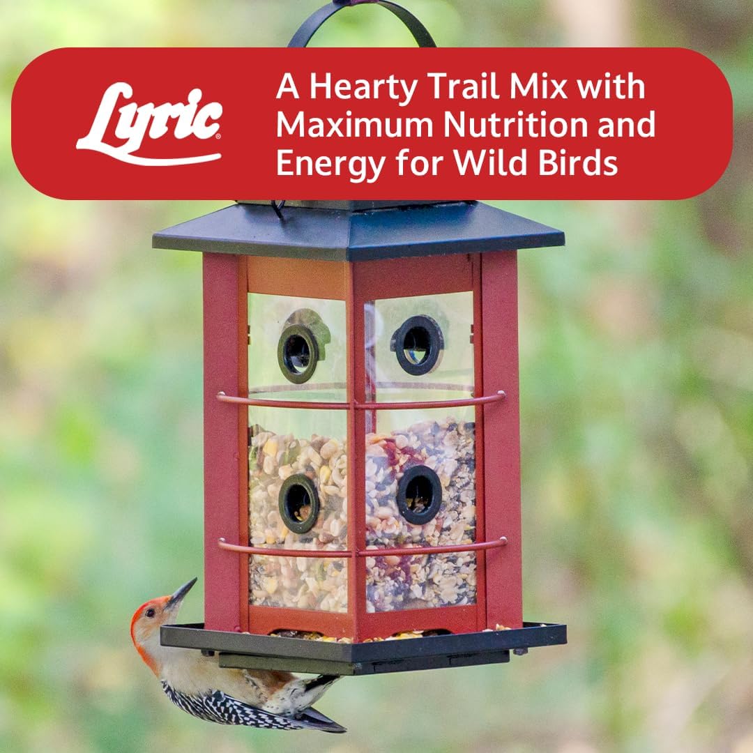Lyric Fruit and Nut Wild Bird Food is a premium treat for the feathered visitors in your backyard. Packed with high-energy nutrition, this gourmet blend includes dried fruits and a rich assortment of nuts such as shelled peanuts, Valencia peanuts, almonds, pecans, cashews, pistachios, cranberries, raisins, sunflower kernels, shelled pumpkin seeds, and crimped corn. This hearty mix is designed to support wild birds' high energy needs throughout the year—from foraging in winter to nesting in spring. Whether you're filling hopper feeders, tray feeders with covers, tube feeders, or wire mesh feeders, Lyric Fruit and Nut Energy Mix is a versatile and easy-to-use option. Watch your outdoor space come alive as a variety of colorful songbirds—including cardinals, chickadees, grosbeaks, jays, nuthatches, titmice, waxwings, woodpeckers, and more—flock to your feeders. Ideal for outdoor feeding. Bring the beauty of nature to your backyard and enjoy hours of birdwatching with Lyric’s high-quality wild bird food. Support bird health, energy, and vitality—while turning your garden into a lively bird sanctuary.