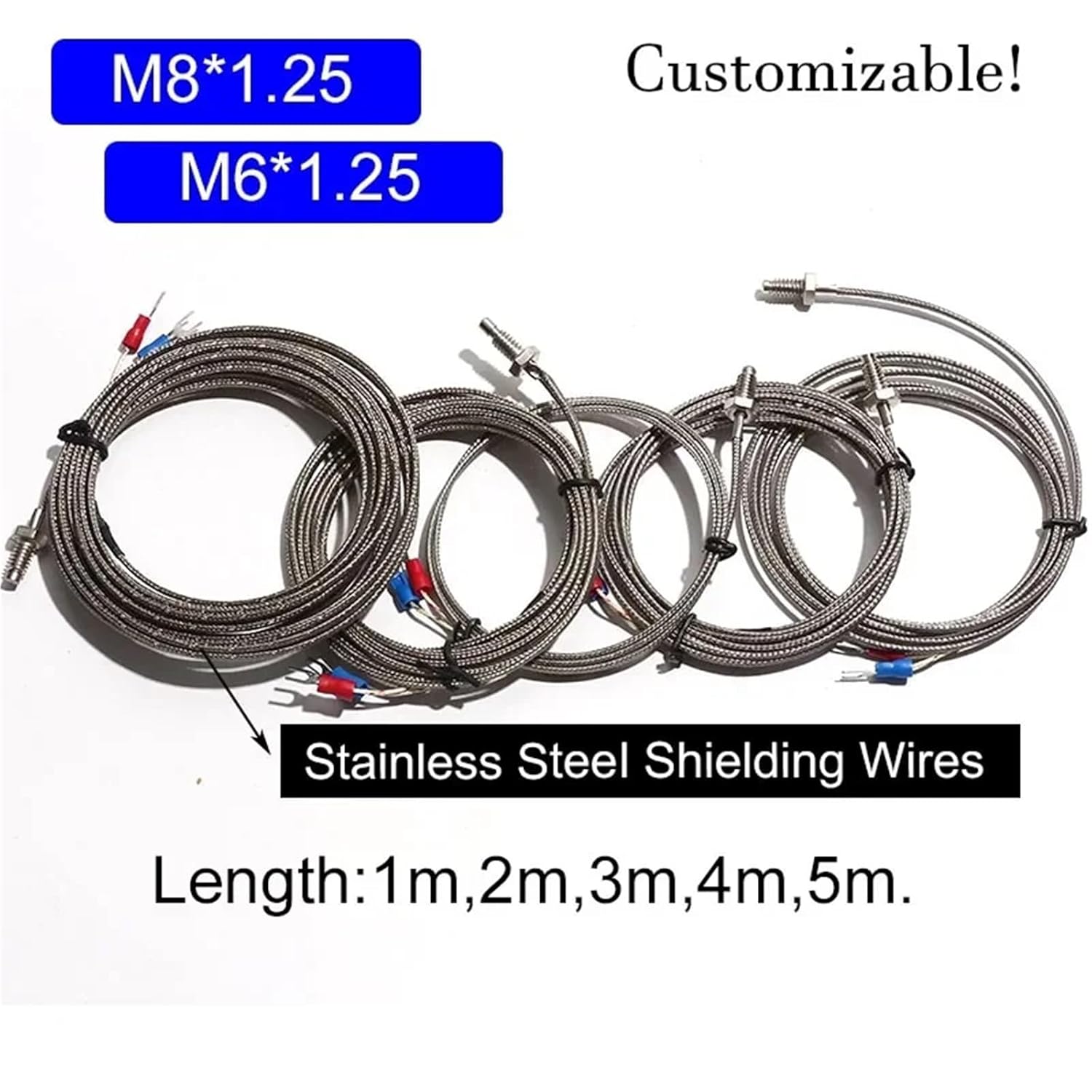 Current SwitchesProduct Name Thread Screw ThermocoupleProduct ModelK/J/E TypeThread SizeM6*1.25Screw Diameter6mmCable Length1-5MCable MaterialGlass fiberTemperature Measurement RangeK 0~800 ;J 0~400;E 0~400.