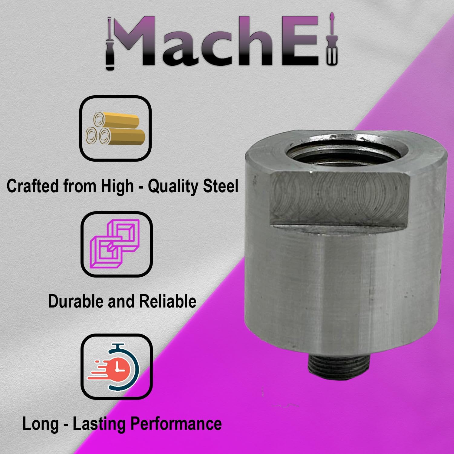 The MachEl Lathe Spindle Adapter is a versatile tool designed to seamlessly connect a 1" x 8 TPI spindle to M14 x 1 threaded chucks. This adapter allows for increased flexibility and compatibility in your machining operations. Constructed from high-quality materials, it ensures durability and precision. The adapter is easy to install and use, providing a secure and reliable connection between your spindle and chuck.