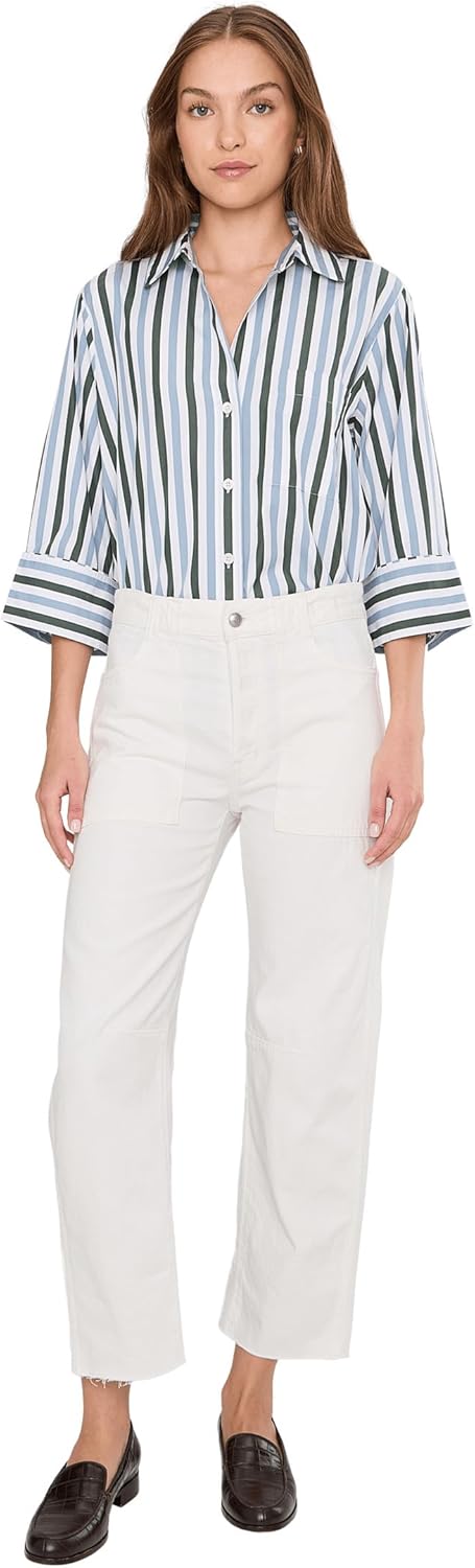 Elevate your wardrobe with the Madewell Women's Military Darted Barrel Jeans in Tile White, a perfect blend of style and functionality. These high-rise jeans are crafted from 100% cotton, ensuring both comfort and durability for everyday wear. Designed to embrace the utility trend, they feature a relaxed fit and flat front, offering laid-back polish that seamlessly transitions from casual outings to more formal settings. The structured wide darted barrel leg silhouette cinches at the waist, creating a flattering shape that balances tailored elegance with cool, contemporary style. The zip-fly with button closure and classic belt loops ensure easy wearability, while four straight pockets provide practicality without compromising on aesthetics. Finished in a fresh Danver wash, these jeans not only offer a crisp, clean look but are also Fair Trade Certified, reflecting a commitment to ethical fashion. Machine washable for convenience, they integrate effortlessly into your everyday lineup, providing a chic, versatile option for any occasion. Whether you're heading to a weekend brunch, a casual office day, or a city stroll, the Madewell Military Darted Barrel Jeans are designed to complement your lifestyle, ensuring you step out in confidence and style.
