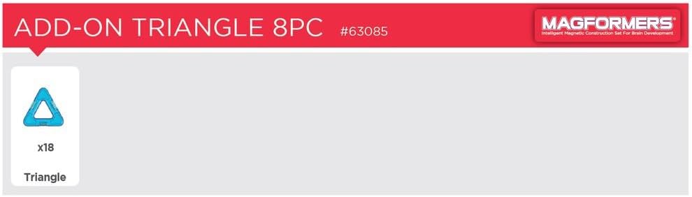 Product Description Enhance any set with 8 addition Rainbow colored original Magformers shapes. Magformers align perfectly with STEM education and allow kids to actively learn about kinetic motion, structural building and shape recognition. The open nature of Magformers shapes are great for small fingers to handle and the instant connectivity will let the fun last for hours! With the addition of a pentagon, budding architects will be kept busy building, creating and discovering all day long! The original and authentic Magformers. Perfect for brain development, critical thinking and STEM education. Follow the Step-by-step educational idea booklet for ideas and instructions. Each geometric shape contains magnets that never reject, so you’ll always hear the Magformers click. When playtime is over, use the magnetic power to simply stack and store. From the Manufacturer Best item for first user of Magformers or the additional purchasing for triangles! 8 pieces total, 8 triangles.