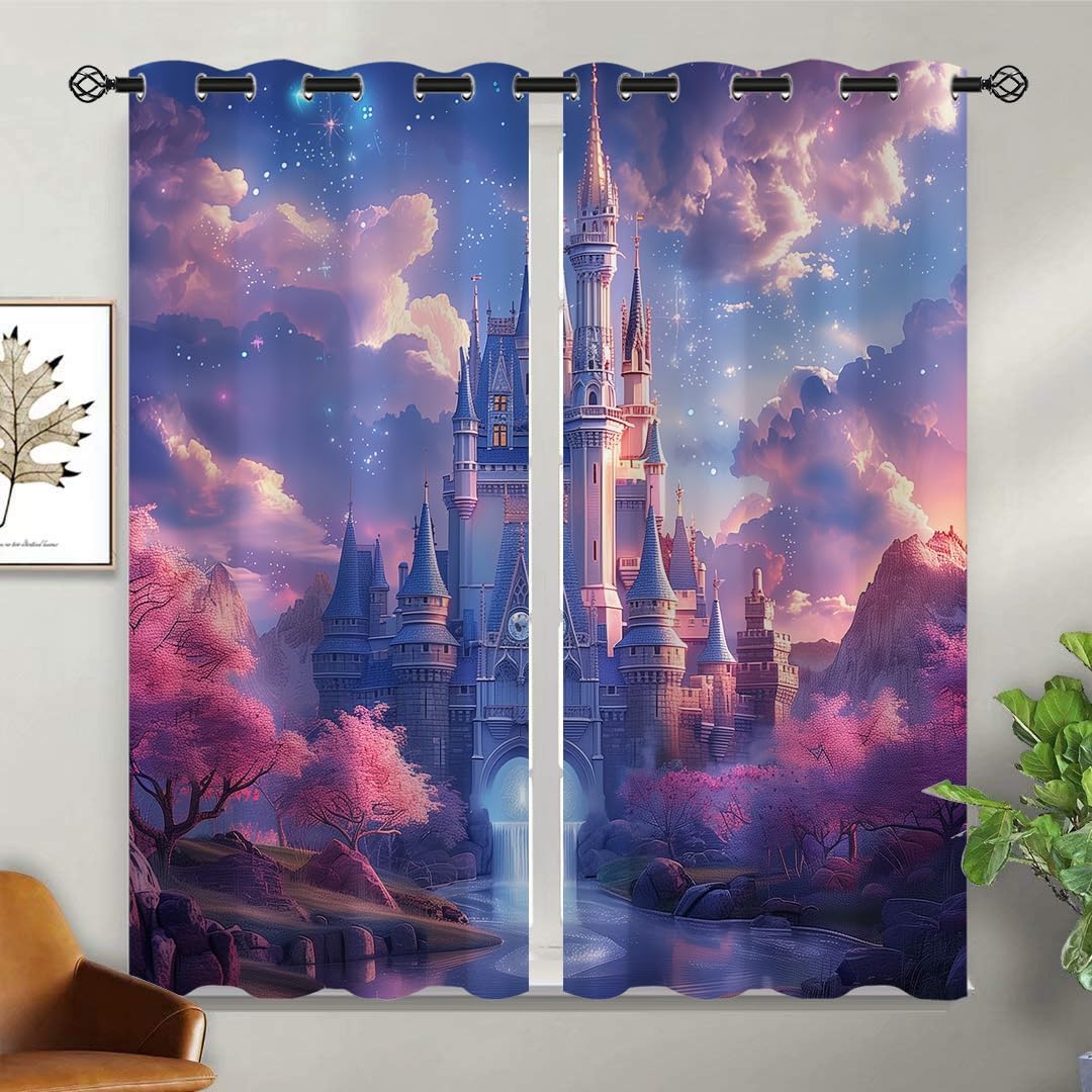 These print curtains are perfect for Living room, bedroom, kids room, kitchen, yard, patio, parlor, sliding door with Magic Castle,Princess Castle Fairy tale World pattern.- Unique design:· Save energy costs by insulating against heat and cold.· Reduce noises from busy streets and high-traffic areas.· Protect furniture from sun damage and fading.· Provides complete privacy when needed· Perfect for any bedroom, office kids room and living room.- Package Included:· Blackout window curtains 2 Pcs set ( two panels).- Material:· Our Blackout Curtain Liners are crafted from a durable soft and thick triple weaved blackout fabric which can block out sunlight and UV rays. The darker color of the fabric, the more light it can block.- Easy Care Instructions:· Machine washable in cold water· Do not bleach.· tumble dry on low· low temperature ironing- Notes:· For your curtains to be more perfect, please choose a size 5-10 Inch larger than the actual window width.· here may be slight differences in colors on different displays. If you have any questions about the product, please feel free to contact us.