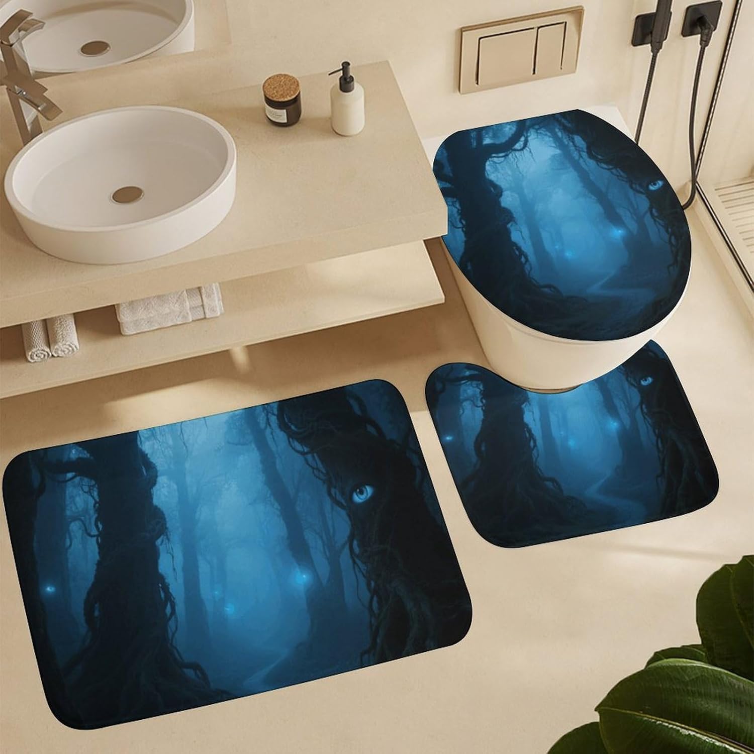Welcome to a Cozier, More Organized BathroomComplete Bath Mat Set Cute Shower Curtain Set Bath Accessories Set Bathroom Set with Shower Curtain Bathroom Decor Soft Bath Mat Bathroom Decor Set Bathroom Rug Bathroom Floor Mat Housewarming Gift Bathroom Vanity Mat Luxury Bathroom Mats Set for Tub Side Bath Mats for Bathroom SetLuxurious Comfort UnderfootOur thick, velvety coral fleece bath mats are exceptionally soft and gentle on your skin. They are highly absorbent, quickly wicking moisture away from your feet after a shower or bath, leaving your bathroom floor dry and preventing slips.Functional Protection & PrivacyThe included waterproof Oxford fabric shower curtain is a reliable barrier against water spray, protecting your bathroom from moisture. It ensures privacy while its sleek look complements most decors. The matching toilet lid cover adds a finished, hygienic touch to your toilet.Thoughtful Details for Your ConvenienceThe modern shower curtain set feature a secure non-slip backing to keep them firmly in place. The set comes ready to use with 12 durable C-shaped plastic hooks for the curtain. Achieving a put-together bathroom has never been easier.Easy Care for Lasting BeautyMaintaining a fresh, clean bathroom is simple. The mats fluff up nicely after washing. We recommend gentle hand washing to best preserve the fabric's softness and color vibrancy. The shower curtain can be wiped clean with a damp cloth.Create Your SanctuaryIdeal for master bathrooms, guest suites, apartments, dormitories, or rental properties. This set is the perfect gift for housewarmings, new homeowners, or anyone looking to upgrade their bath space with minimal effort and maximum style.