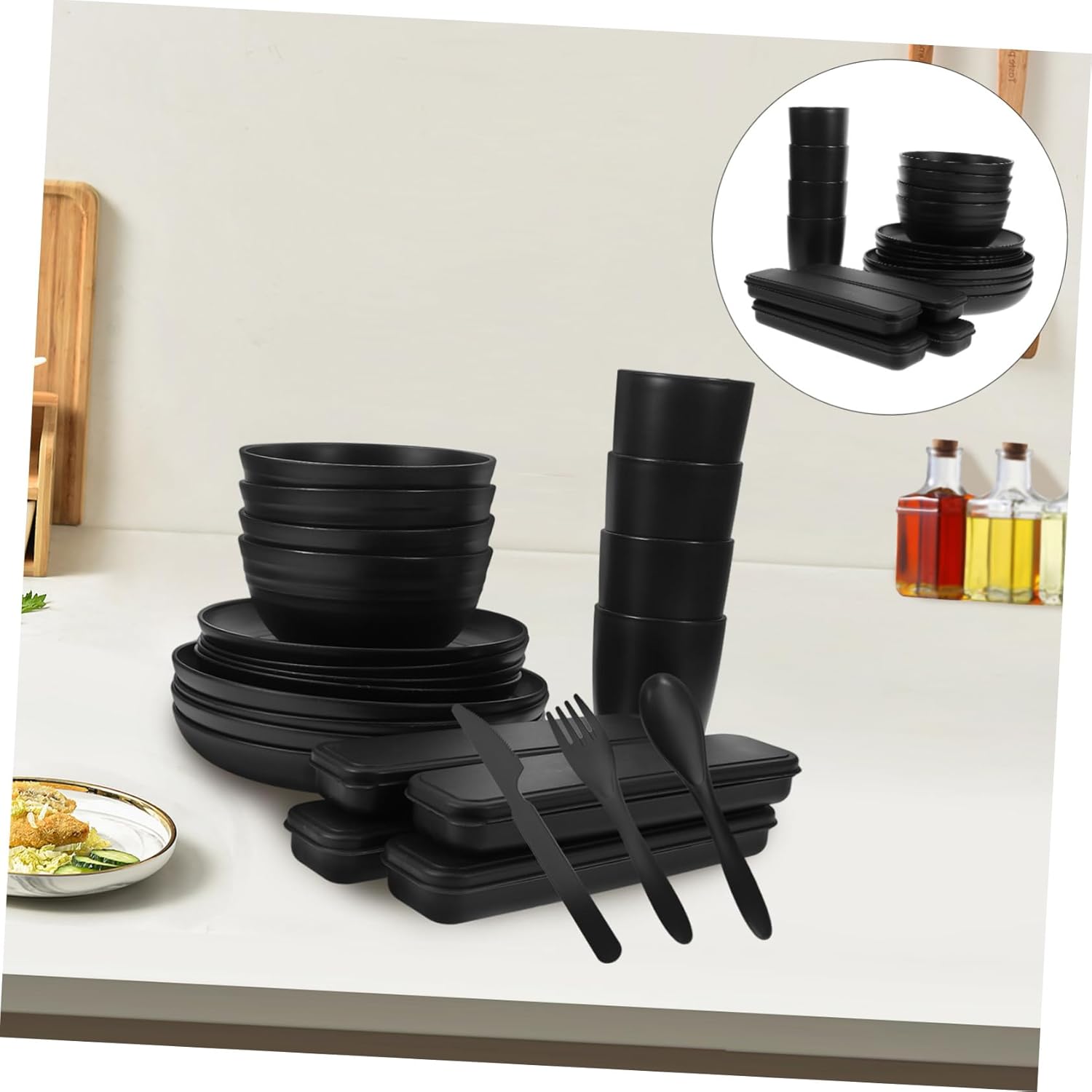 Package List 4 x bowls 4 x plates 4 x cups 4 x cutters 4 x forks 4 x spoons 4 x storage boxes Features -Size:20.00X20.00X3.00cm/7.86X7.86X1.18in (plate) noodle bowl with cup -Size:14.50X14.50X7.50cm/5.70X5.70X2.95in (bowl) bento bowl -Size:20.50X5.50X2.50cm/8.06X2.16X0.98in (box) noodle bowl with tableware -Size:10.80X8.00X5.00cm/4.24X3.14X1.97in (cup) Reusable Utensils With Case -Color:Black kitchen gadgets -Material:PP lunch holder - This reusable and versatile bowl is the for your different food storage needs portable tableware. - Practical bowl can be used for storage porridge, noodles and soup, fit your different demands Travel Spoon. - Smooth surface without burrs, easy to use and clean, will not scald or hurt your hands party dinnerware. - The Cutlery is able to satisfy your needs no matter at home or outdoor, useful and simple to use Bowl Plate Dinnerware. - Suitable and wonderful for picnic, hiking, camping, climbing, BBQ and other activities Lunch Cutlery With Case.Goods Descriptionlunch holder Made of sturdy material, smooth surface, can keep this ramen bowl for longtime using.camping dishes utensils If you are in search of a bowl with multiple uses, then you can take a look at our bowl.Utensils With Case This bowl is for storing food such as noodles, porridge, soup, salad and so on
