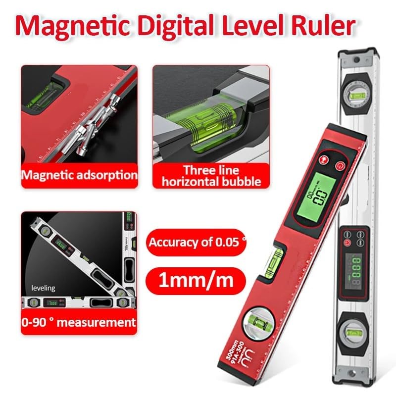 Measurement Kitsfeature1. Magnetic adsorption: adsorption design, firmly adsorbs ferrous metals.2. Accurate horizontal measurement: 0°-90° accurate horizontal tilt measurement, accuracy up to 0.05°, 1mm/m.3. Three-line large level bubble: three-line measurement is clear and accurate; double-sealed protective cover design effectively protects the level bubble and extends its service life.4. Anti-drop and shockproof: adopts thickened end cover design, with strong shock resistance.SpecificationProduct Name: Magnetic Flap Level GaugeResolution: 0.05°Accuracy: ±0.1