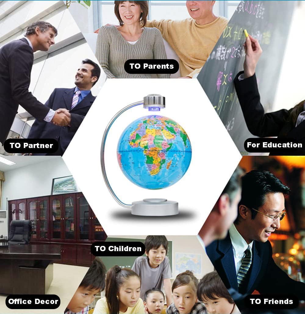 Experience the marvel of modern technology and the wonders of our planet with our stunning 8-inch Magnetic Levitation Earth Globe. This innovative globe combines cutting-edge design with educational insight, making it an ideal addition to any space, whether it's a personal desk, a corporate office, or a festive setting. The 8-inch sphere features crisp, detailed printing that brings the Earth's geographical features to life. From mountain ranges to oceans, coastlines to countries, every detail is beautifully rendered for an informative and visually stunning experience. Product Description: Product Name: Magnetic Floating Globe Material: ABS, Steel Tube Globe Diameter: 8inch (20cm) Globe Color: Blue Input: 110-240V Output: 12V 500mA Product Features: Innovative, Tech Novelty, Touch-Controlled LED Light, Air Levitating / Auto Permanent Revolving System (updated to 2 directional) Package Included: 1 x Magnetic Levitation Globe 1 x Charger Adapter with UL certification 1 x Instructions 1 x spoon tool Perfect For: - Decorative Accent: Enhance the aesthetic appeal of your home, office, or study with this sleek and modern globe. - Business Gifts: Impress clients and colleagues with a thoughtful, innovative gift that combines beauty and brains. - Celebratory Occasions: Make any birthday, Halloween, Christmas, or special event memorable with a unique and tech-savvy present. Warm Tips: If you have any questions about our products, please feel free to contact us. We are always ready to offer best service for you!