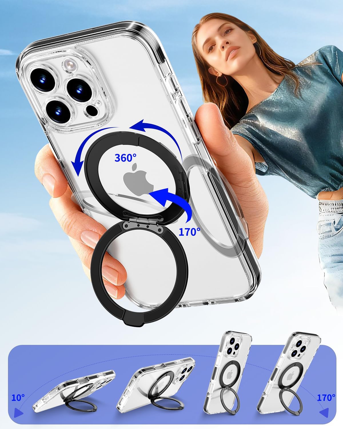 DecaStars Magnetic for iPhone 16 Pro Case with 360 Spin Stand [Compatible with MagSafe] [Military-Grade Protection] [Detachable Strip] Anti-Yellowing Slim Case for iPhone 16 Pro 6.3", Black