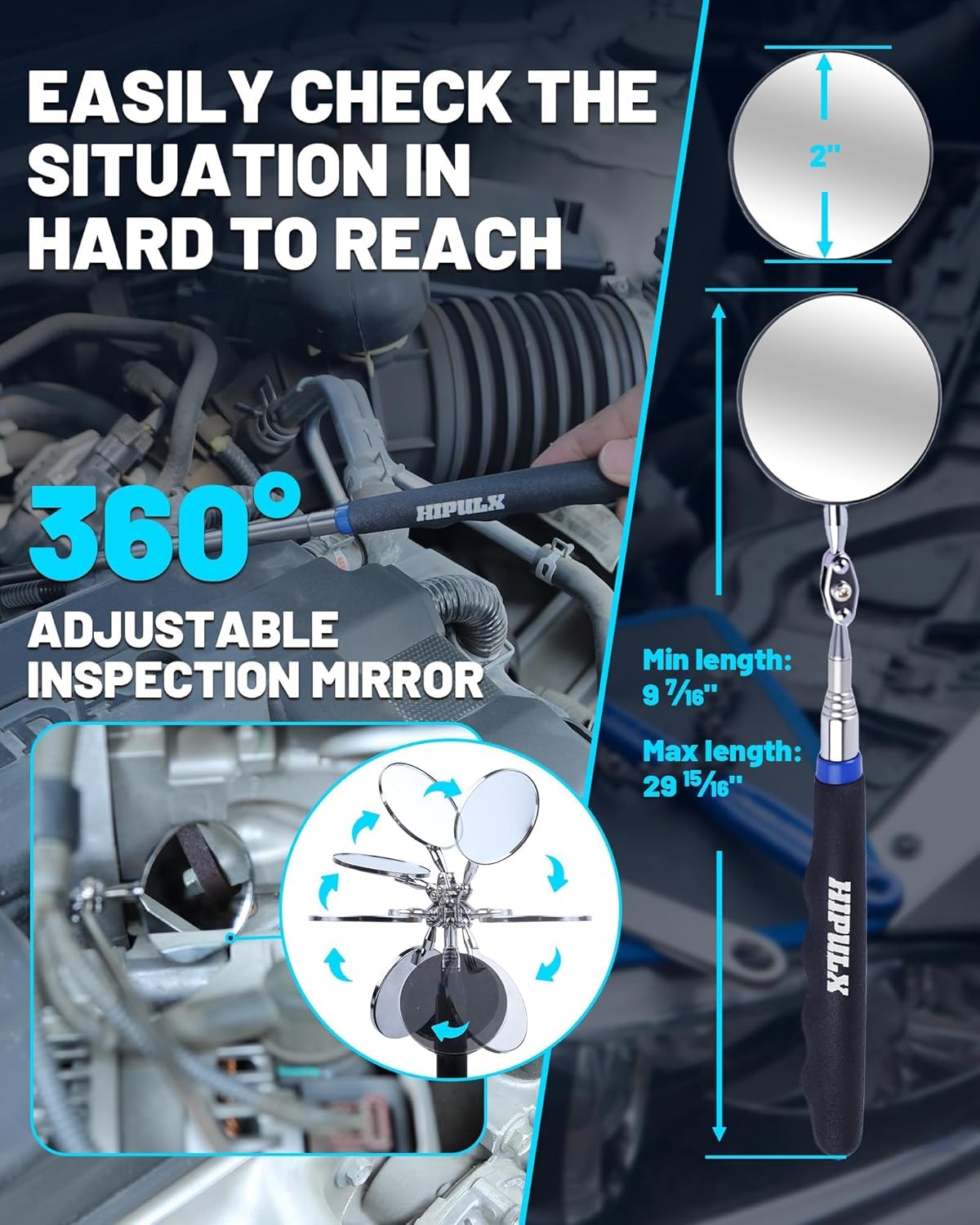 | Included Components | 1pc Tool Organizer for Garage 4pcs Magnetic Pads, 1pc Tool Pad with Telescoping Magnetic Pickup Tool & Inspection Mirror |