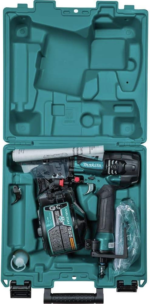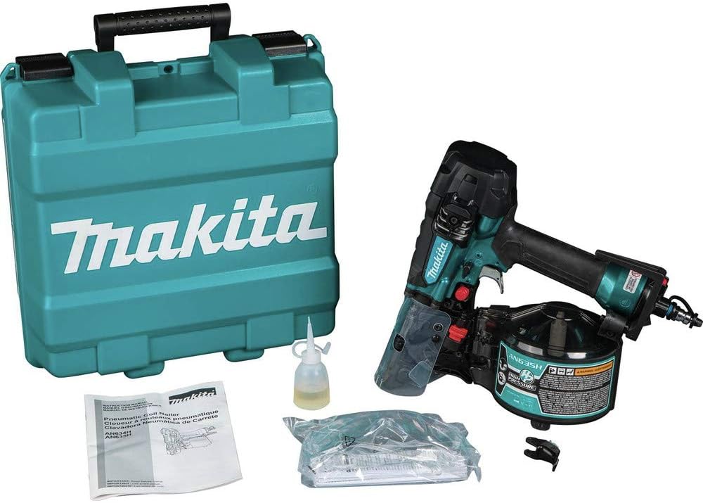 Makita’s 2-1/2-inch high pressure Siding Coil nailer, model AN635H, features high pressure technology for more consistent flush nailing with less weight and a more compact size. The AN635H can operate at high pressure (170-320 PSI), and with its high pressure capacity and superior power-to-weight ratio is up to 30% more compact than a conventional nailer. The AN635H also weighs less – only 4.9 lbs. – yet holds up to 400 nails in sizes ranging from 1-1/4-inches to 2-1/2-inches. With increased pressure for driving each nail, the AN635H delivers more consistent flush nailing. “Tool-less” depth adjustments have been engineered to provide the option of precise flush or Countersink nailing, and includes both a single sequential actuation trigger or a contact actuation trigger allowing one to control their nailing operations. The AN635H has an easy-load nail canister and a see-through window. The canister base adjusts easily for various nail sizes, delivering faster, more efficient loading for increased productivity. For user comfort, there are large rubberized grips, a tool hook to keep the nailer close by while not in use, and a side exhaust port to direct exhaust air away from the user. Additionally, there's a built-in air Duster that provides convenient air flow to clear your work surface.