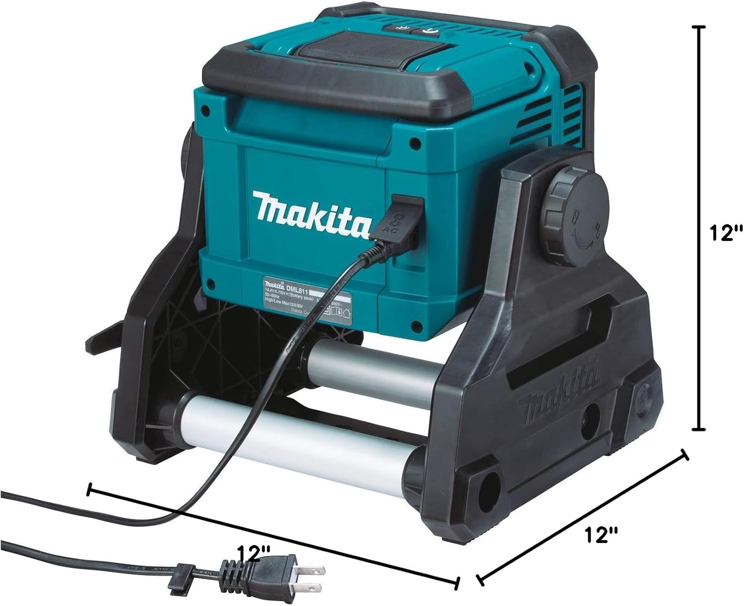 The 18V LXT Lithium-Ion cordless/corded work light (DML811) offers the convenience of cordless or corded operation, and provides bright and even illumination for work spaces. At full brightness It provides 3, 000 lumens of light, and 750 lumens on low mode. Adjusting knobs enable the user to direct the light to the desired angle. The work light can be mounted on an optional tripod stand (SOLD Separately). dust and water-resistant construction (IP65 rated) for improved operation in harsh job site conditions. it’s part of Makita’s expanding 18V LXT system, the world’s largest cordless tool system powered by 18V Lithium-Ion slide-style batteries. Makita 18V LXT Lithium-Ion batteries have the fastest charge times in their categories, so they spend more time working and less time sitting on the charger. The fast-charging 18V LXT Lithium-Ion 5. 0Ah battery (sold separately) delivers 11 hours of continuous illumination on the low setting.