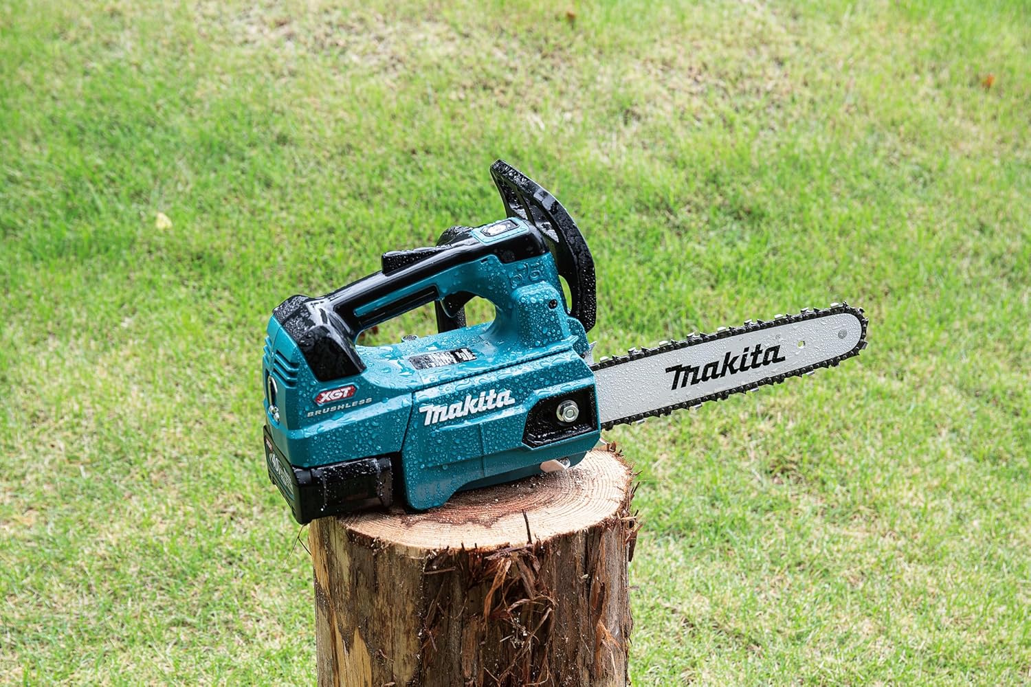 Lightweight and compact cordless top handle chainsaw for professional tree care. Anti-lost nut for rail attachment. Main switch with automatic shut-off function protects the battery and avoids accidental switching on. Only approved for commercial users with special training. Specifications: power-saving work due to low weight; large viewing window allows quick control of the oil level; auto-stop function; IPX4 water resistance during battery operation; technical details: battery voltage 40 V; battery system XGT; battery protection system; tank chain oil 0.2 litres; chain speed 24.8 m/s; chain pitch 3/8 inches; chain thickness 0.043 inches; rail groove width. 1.1 mm; Weight including battery (EPTA) 3.8 - 4.4 kg; product dimensions (L x W x H): 266 x 194 x 227 mm; rail length 25 cm / 10 inches