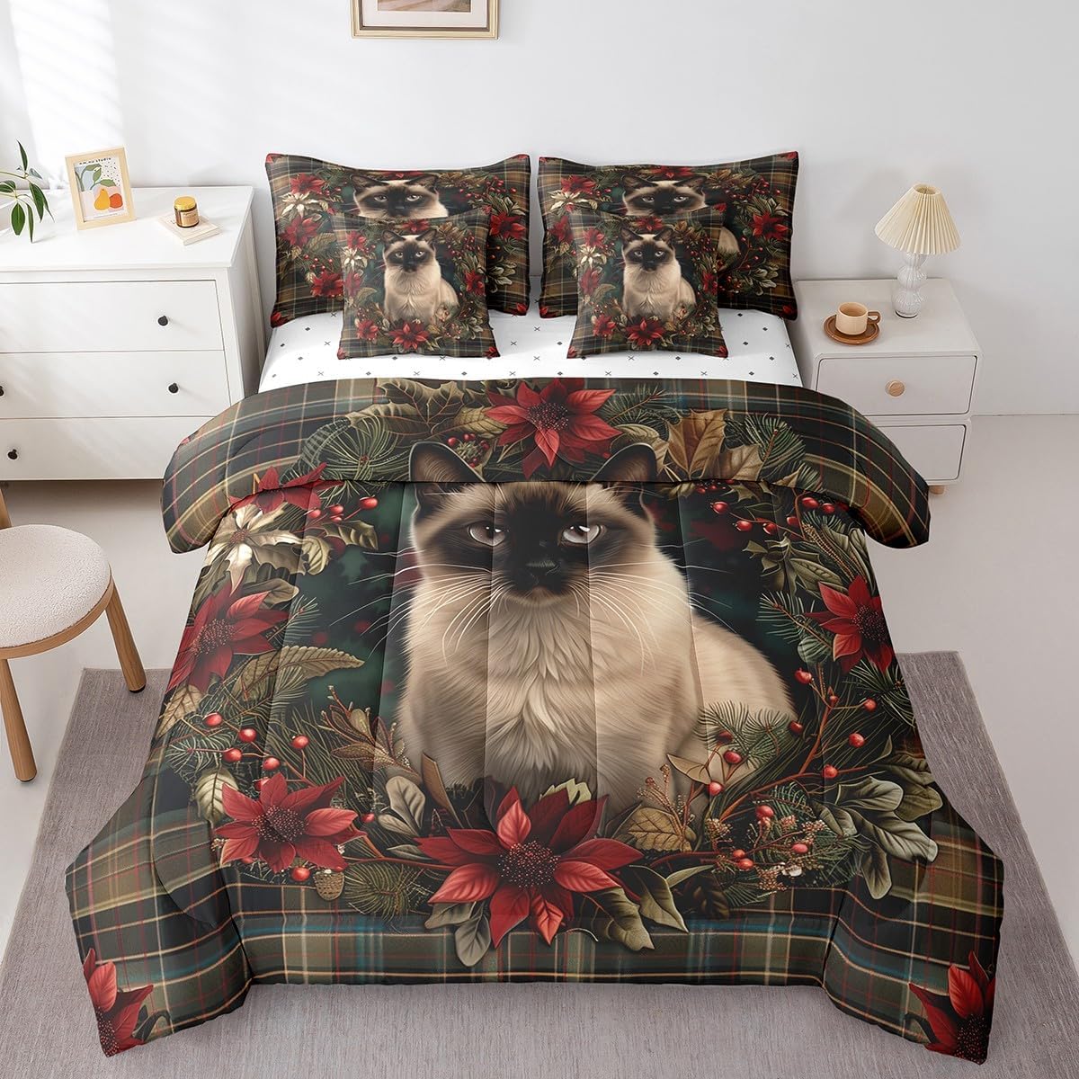 Welcome to our store. We have specialized in home textile for many years. We are contribute to provide the best customer service and products. We'll try our best to answer your questions and solve your problems. Size information: Twin size: 1 Down Comforter 68"W x 90"L, 1 Fitted Sheet 39"W x 75"L x 16"H, 1 Flat Sheet 67"W x 96"L, 2 Pillowcases 20" x 30", 2 Throw Pillow Covers 18" x 18" Full size: 1 Down Comforter 79"W x 90"L, 1 Fitted Sheet 55"W x 75"L x 16"H, 1 Flat Sheet 81"W x 96"L, 2 Pillowcases 20" x 30", 2 Throw Pillow Covers 18" x 18" Queen size: 1 Down Comforter 90"W x 90"L, 1 Fitted Sheet 60"W x 80"L x 16"H, 1 Flat Sheet 90"W x 102"L, 2 Pillowcases 20" x 30", 2 Throw Pillow Covers 18" x 18" King size: 1 Down Comforter 104"W x 90"L, 1 Fitted Sheet 78"W x 80"L x 16"H, 1 Flat Sheet 90"W x 106"L, 2 Pillowcases 20" x 36", 2 Throw Pillow Covers 18" x 18" Useful and practical: A luxurious product for homes,dorm rooms,hotels,guest rooms. Practical to use for being polyester, feels like cotton which is super soft and breathable. No chemicals used, no dye substance harming the health of you or your family. Unique design: Vivid Colors won't fade thanks to new 3D digital printing methods. These unique designs match well with various color palettes of your rugs, curtains, headboard, furniture, and all other decor accessories. Washing instructions: Machine wash separately in cold water,hang dry, do not bleach. Warm Tips: 1. Please allow 1-3cm error due to manual measurement. 2. Actual color may vary from the color on your screen due to monitor color restrictions.