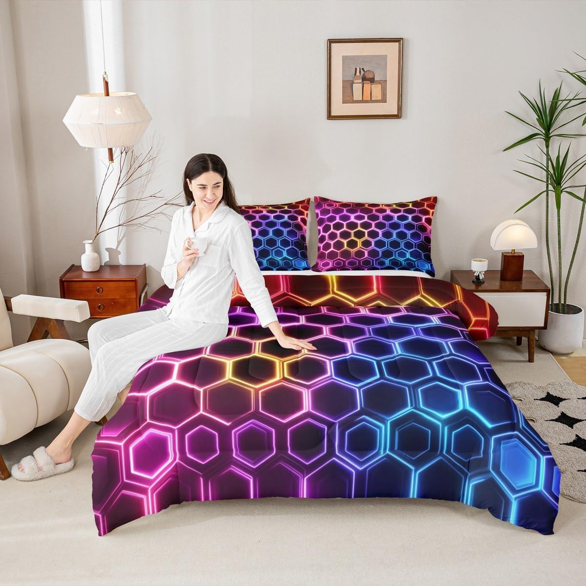Package Include: Comforter and Pillowcase. Makeover your bedrooms every season with our Comforter sets. Perfect item for your room, girls boys youth room, master bedroom. Size Information: Twin size down comforter 68"W x 90"L and 1 pillow case 30"W x 20"L. 2pcs with 1 Bed Comforter and 1 Pillowcases in A Bag Full size down comforter 79"W x 90"L and 2 pillow cases 30"W x 20"L. 3pcs with 1 Bed Comforter and 2 Pillowcases in A Bag Queen size down comforter 90"W x 90"L and 2 pillow cases 30"W x 20"L. 3pcs with 1 Bed Comforter and 2 Pillowcases in A Bag King size down comforter 104"W x 90"L and 2 pillow cases 36"W x 20"L. 3pcs with 1 Bed Comforter and 2 Pillowcases in A Bag Useful and practical A luxurious product for homes, dorm rooms, hotels, guest rooms. Practical to use for being polyester, feels like cotton which is Super Soft and Breathable. No chemicals used, No dye substance harming the health of you or your family. Unique design: Vivid Colors won't fade thanks to new 3D digital printing methods. These unique designs match well with various color palettes of your rugs, curtains, headboard, furniture, and all other decor accessories. Personalized: As manufacturers of digital printed home textiles, we follow current trends and bring you the latest home fashion. More Decor: Search our store to get more christmas theme, new year theme, autumn fall theme, any holiday theme, modern abstract, farmhouse rustic theme, simple pattern, garden flowers etc. home decoration. Warm Tips: 1. Please allow 1-3cm error due to manual measurement. 2. Actual color may vary from the color on your screen due to monitor color restrictions.