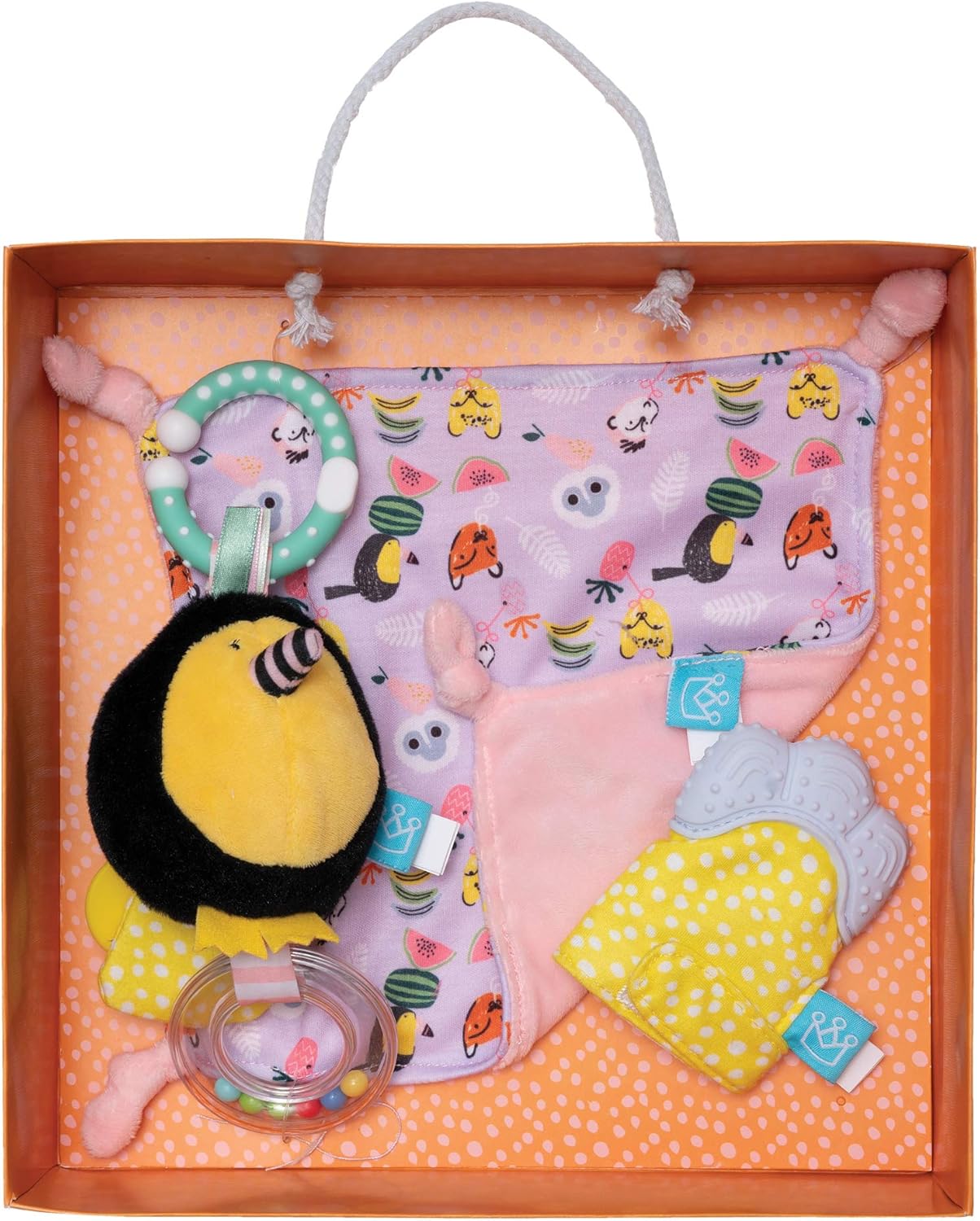 The Fruity Paws Gift Set for infants and teething toddlers features an attractive soft fabric toucan travel toy with chime with teething ring, ultra-soft blankie, and teething mitt with hook and loop fastener. Attractive packaging helps make this set an excellent baby shower gift for the expectant momma! Since 1978, Manhattan Toy has been making award-winning, high quality, educational toys for your baby, toddler or kid. From infant toys and baby toys to sensory development toys, our goal is to provide the safest and best toys available.