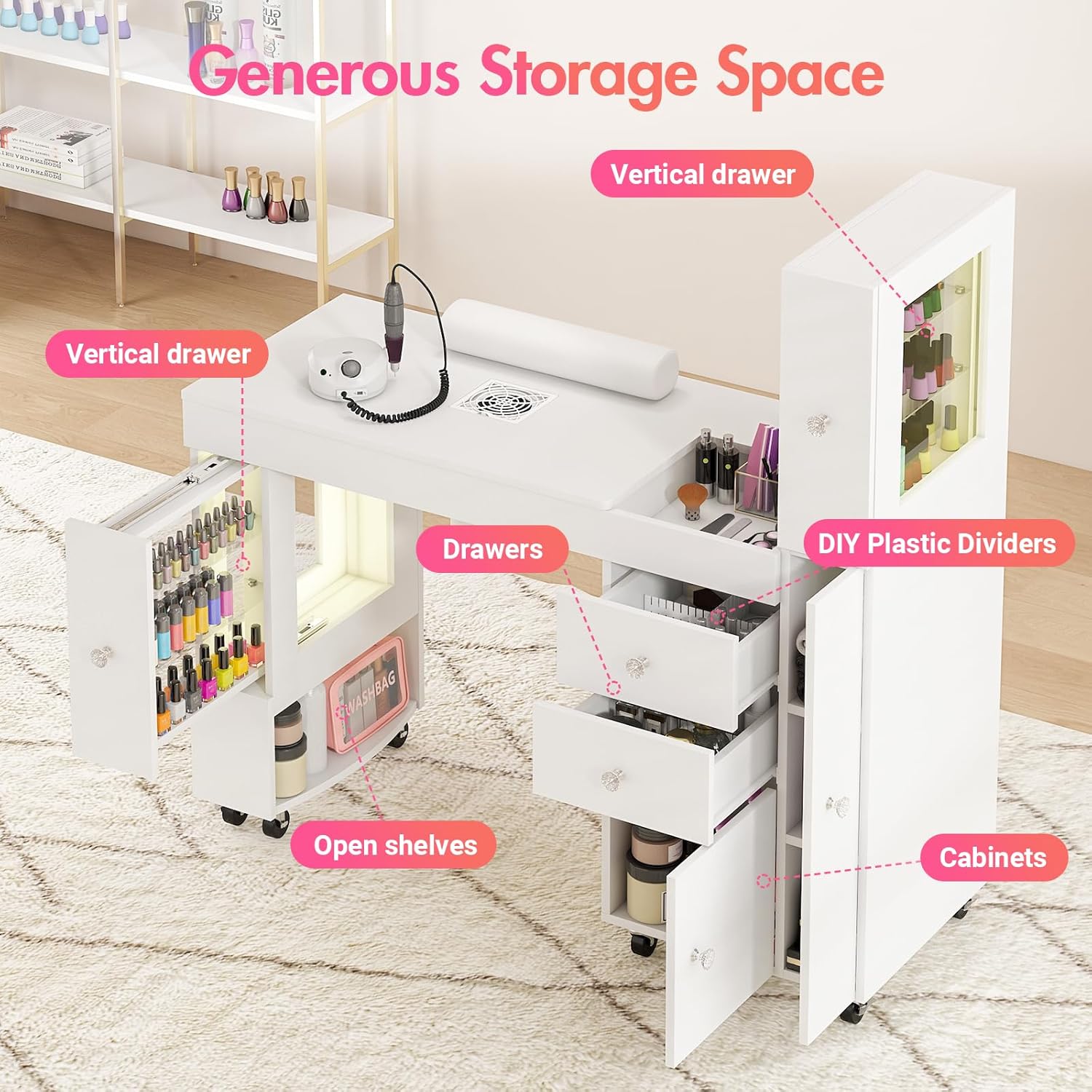 | Model Name | Kikihouse Nail Desk with LED Display Cabinet |