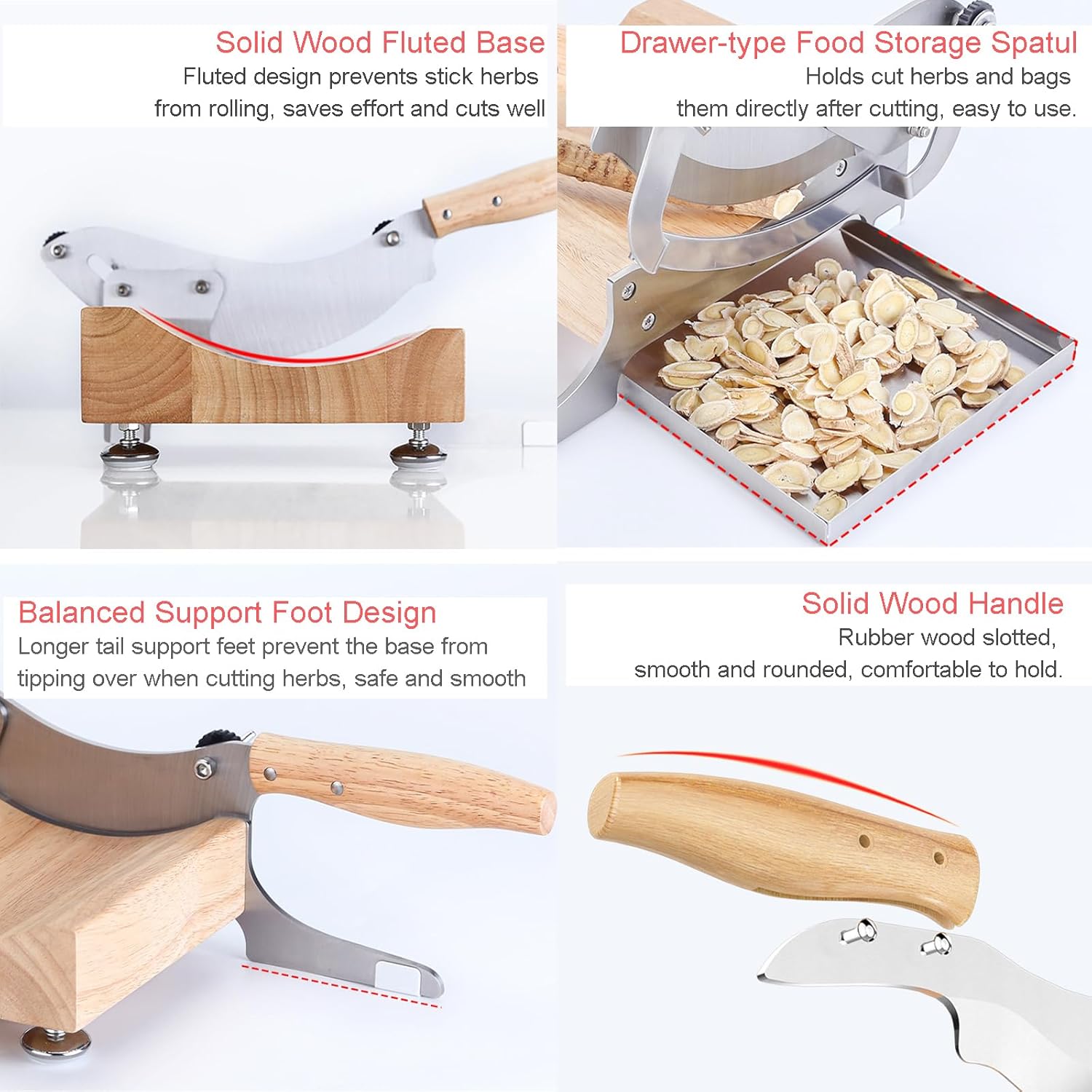 • 【THICK SOLID WOOD BOTTOM, GROOVE BASE】- Our slicer is made of solid rubber wood with a thick wood base. It has a strong texture and is durable. The base is designed with grooves to avoid the rolling of stick-shaped medicinal materials on the table and cut them more easily. The medicinal materials filled with grooves at one time can also be easily handled, which saves labor and improves efficiency.