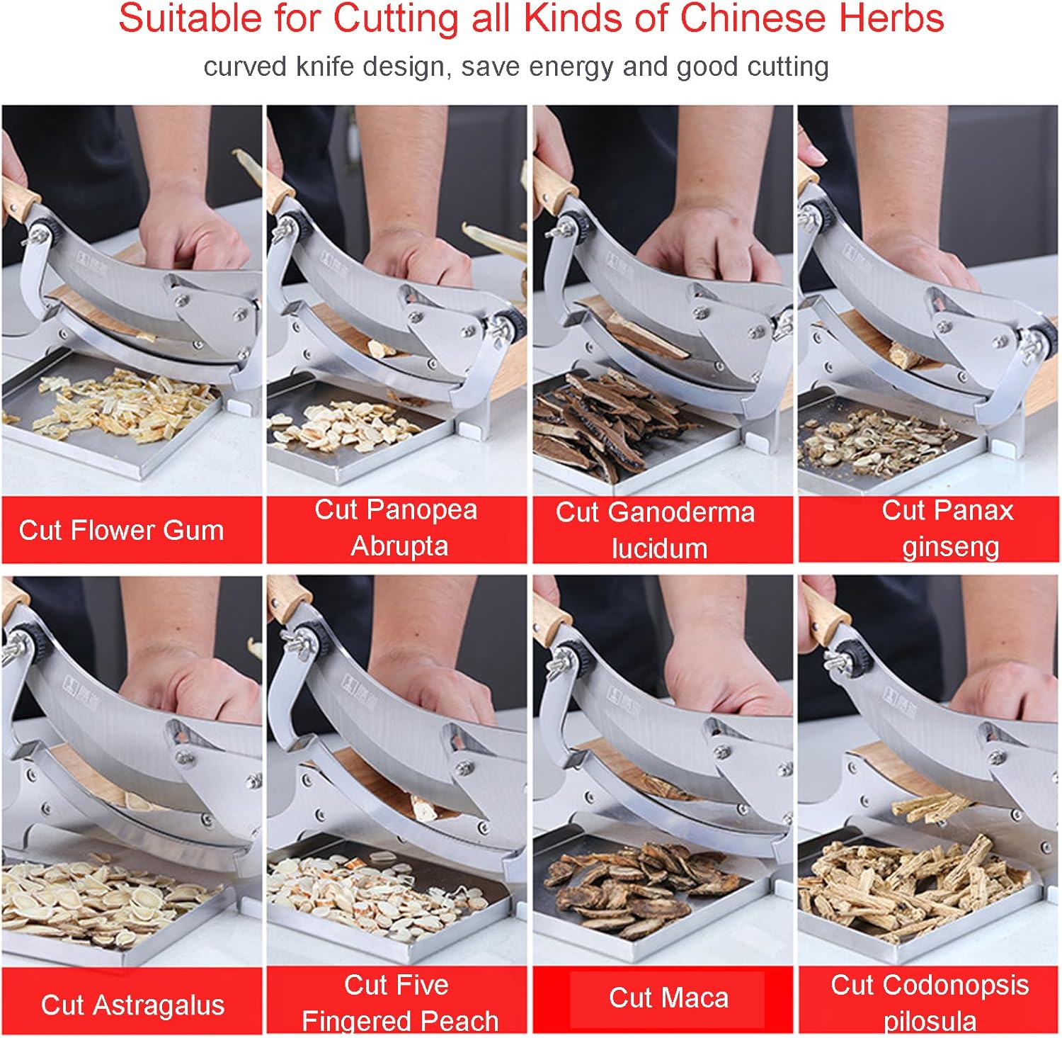 • 【BENDING CUTTER DESIGN, CUTTING LABOR-SAVING】- This Chinese medicine slicer is designed with a curved knife. The blade is cut down in an arc shape, cut before and push back, and cut all kinds of dry medicinal materials easily. Cutting for a long time will not be tired, greatly reducing the labor intensity of processing medicinal materials.