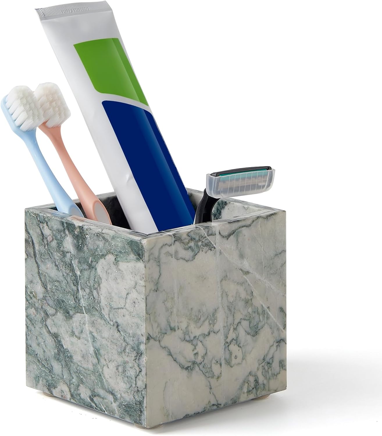 The Ultimate Trio for a Pristine Vanity Spacious Marble Tray: Corral your daily essentials with elegance. Perfect for holding perfume bottles, jewelry, watches, lotions, or small decorative items. Keeps everything within reach yet neatly displayed. Efficient Marble Soap Dish: Eliminate messy soap residue and extend the life of your soap. The raised design with drainage grooves allows water to flow away, keeping your soap dry and your countertop clean and stain-free. Stylish Marble Toothbrush Holder: Securely hold 2-4 toothbrushes and toothpaste in one sleek, hygienic station. Its thoughtful design promotes air circulation and ensures a tidy, organized sink area.