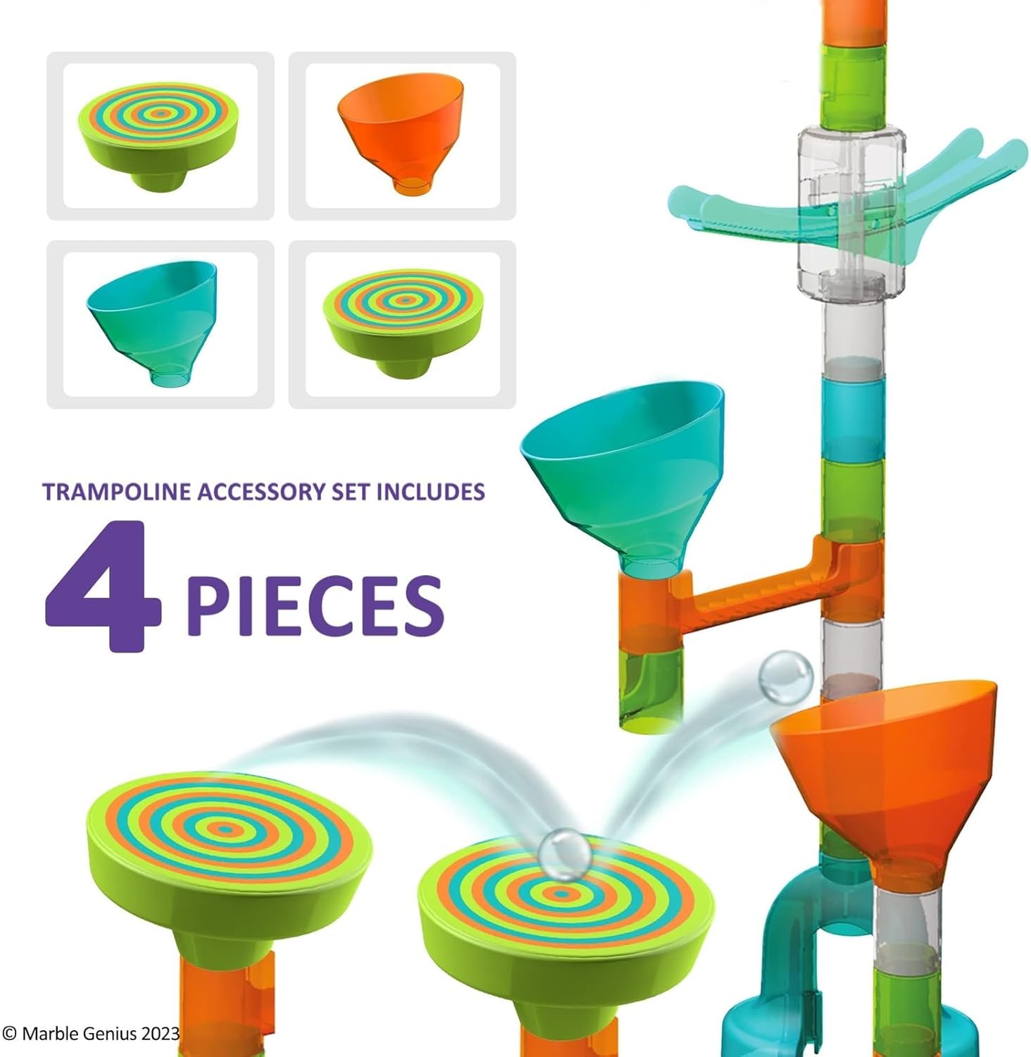 | Included Components | 2 Catch Cups, 2 Trampolines, Access to Marble Genius app for builds, compatible with all Marble Genius Run sets |