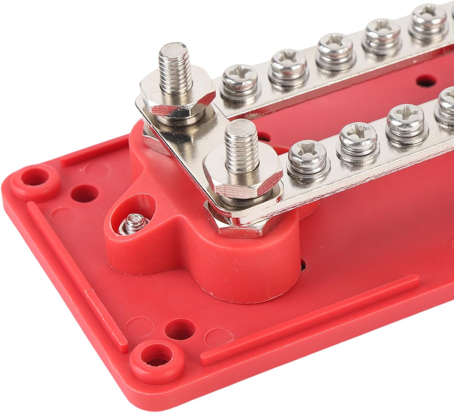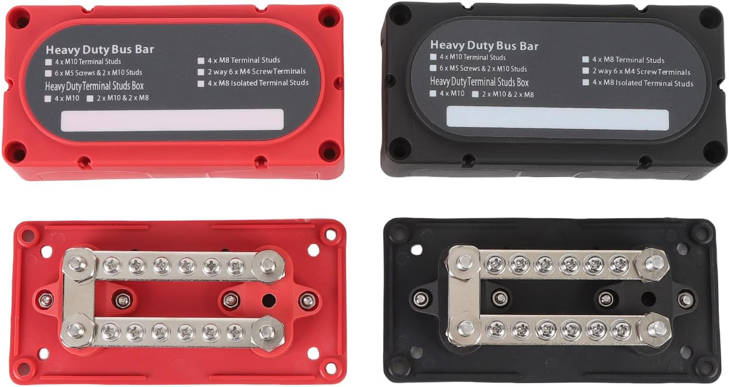 [Adjustable Components] Featuring 6 detachable components, the battery bus bar allows for easy removal and adjustments to suit different wiring configurations within vehicles or vessels. [Versatile Application] This power distribution block is highly versatile, suitable for a wide range of 12v-48v uses in cars, trucks, rvs, yachts, boats, and industrial equipment, providing efficient power distribution. [High Voltage and Current Capacity] The bus bar can support a maximum of 48v dc and 300a continuous current, making it ideal for high-power applications. [Convenient Design] The power distribution block is easy to use in vehicles or for battery relocation, offering unobstructed wiring pathways for a hassle-k> installation process. [Durable Construction] Constructed with nylon and fiberglass for exceptional strength, while the brass zinc plated panel ensures resistance, providing long-lasting reliability. Spec: Item Type: Bus Bar Power Distribution Block Material: Mystical/Fantasy Retardant Nylon Plastic + Brass Terminal Stud Maximum Working Voltage: DC 48V Maximum Working Current: 300A Terminal Stud Size: M6 Advantages: Modular box design for easy wiring; Used for unobstructed wiring; Top blank writing space for easy labeling of each branch Wide Application: Suitable for DC 12-48V cars, trucks, RVs, boats, ships, and other industrial equipment. The distribution block can be used for vehicles or battery relocation Package List: 2 x Busbar Box (total 4 components) 26 x Installation Accessories