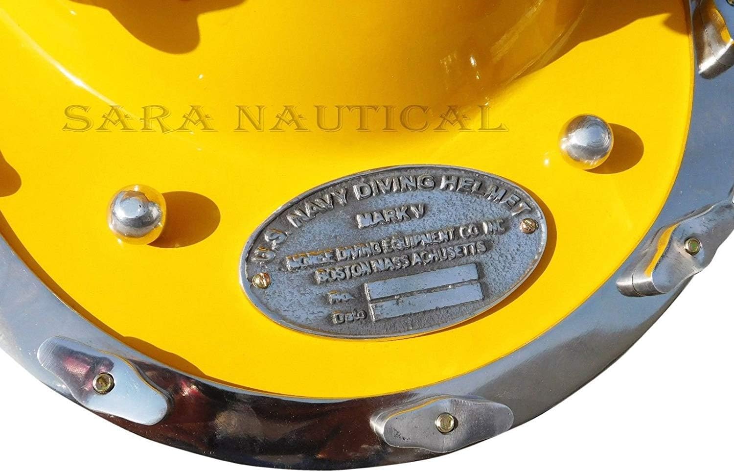 sold by maxnauticalmart & manufacturing by max engineering enterprises scuba helmet 18" nautical diving helmet diving helmet Brand New (Factory Direct) | Exclusive Kitchen & Home Decor Gits & Collectibles By maxnauticalmart divers helmet Antique Finished | Comes With Adjustable Screws In the Neck 100% Quality& Satisfaction | Return Easily & Immediately If Not Satisfied made of iron steel decorative diving helmet scuba helmet Replice Of Sea Diving Helmet | Embossed (US NAVY MARK V)