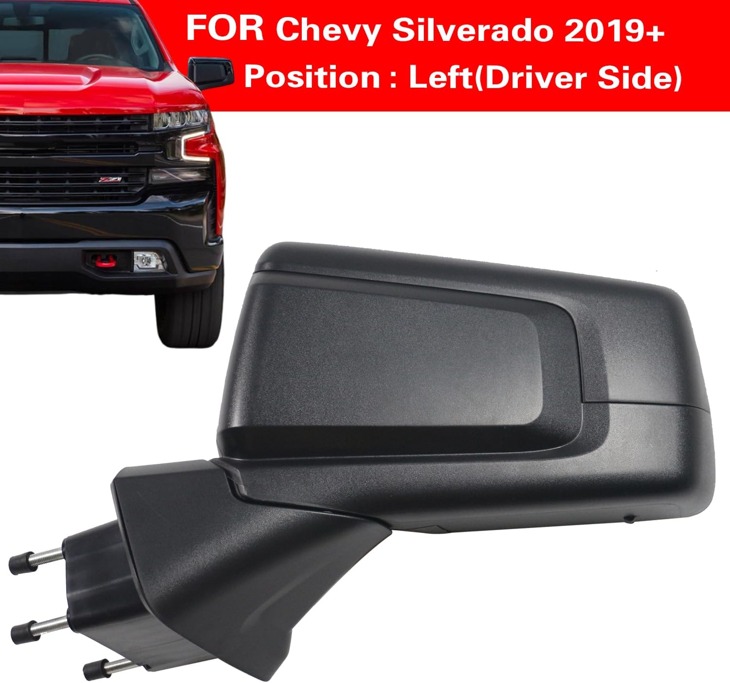 Marretoo Left Driver Side Mirror replacement for 2019-2025 Chevy Silverado 1500 Accessories 6 pins With Power Heated Manual Folding Painted With Blind Spot Monitoring(BSM) TEXTURE BLACK