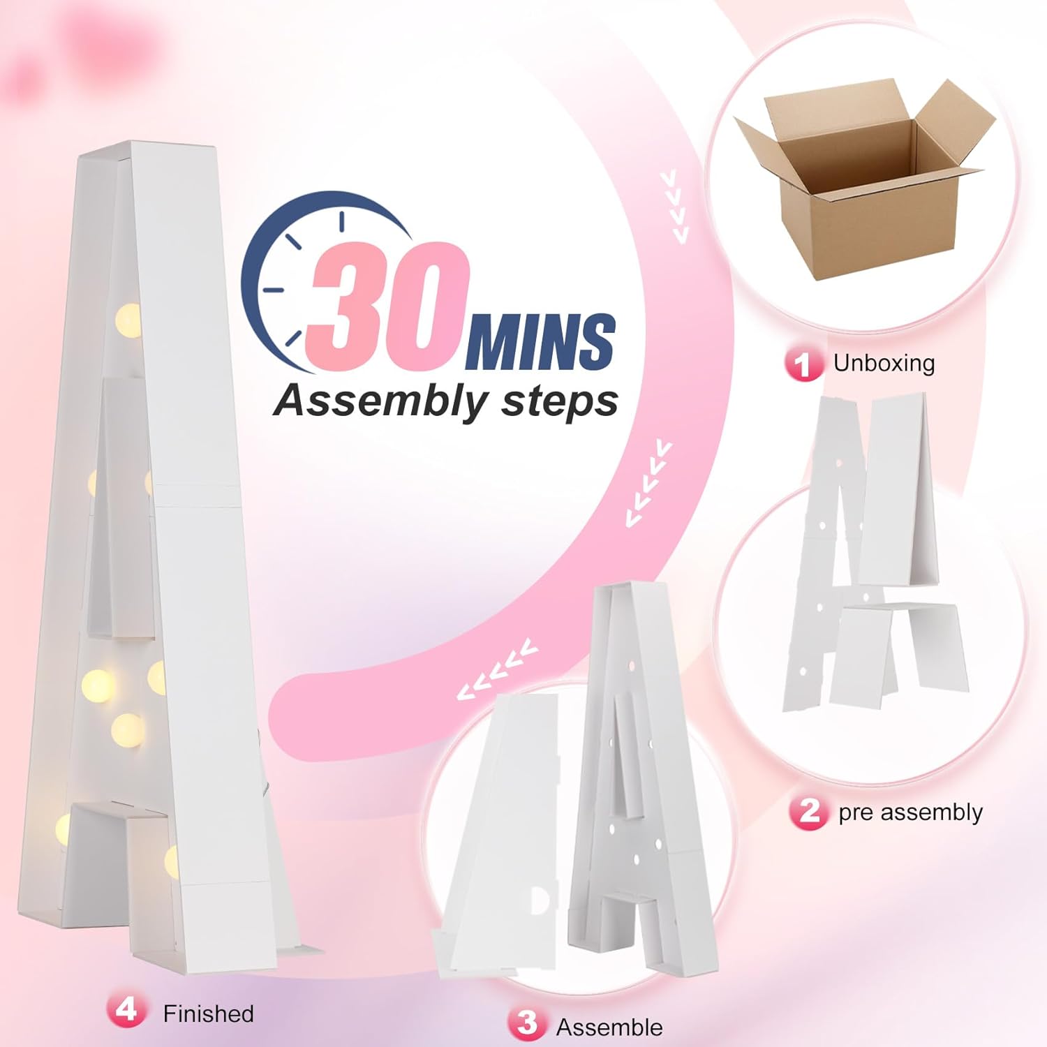 | Included Components | Hot glue gun, Anti-tip support frame, Lighting components |