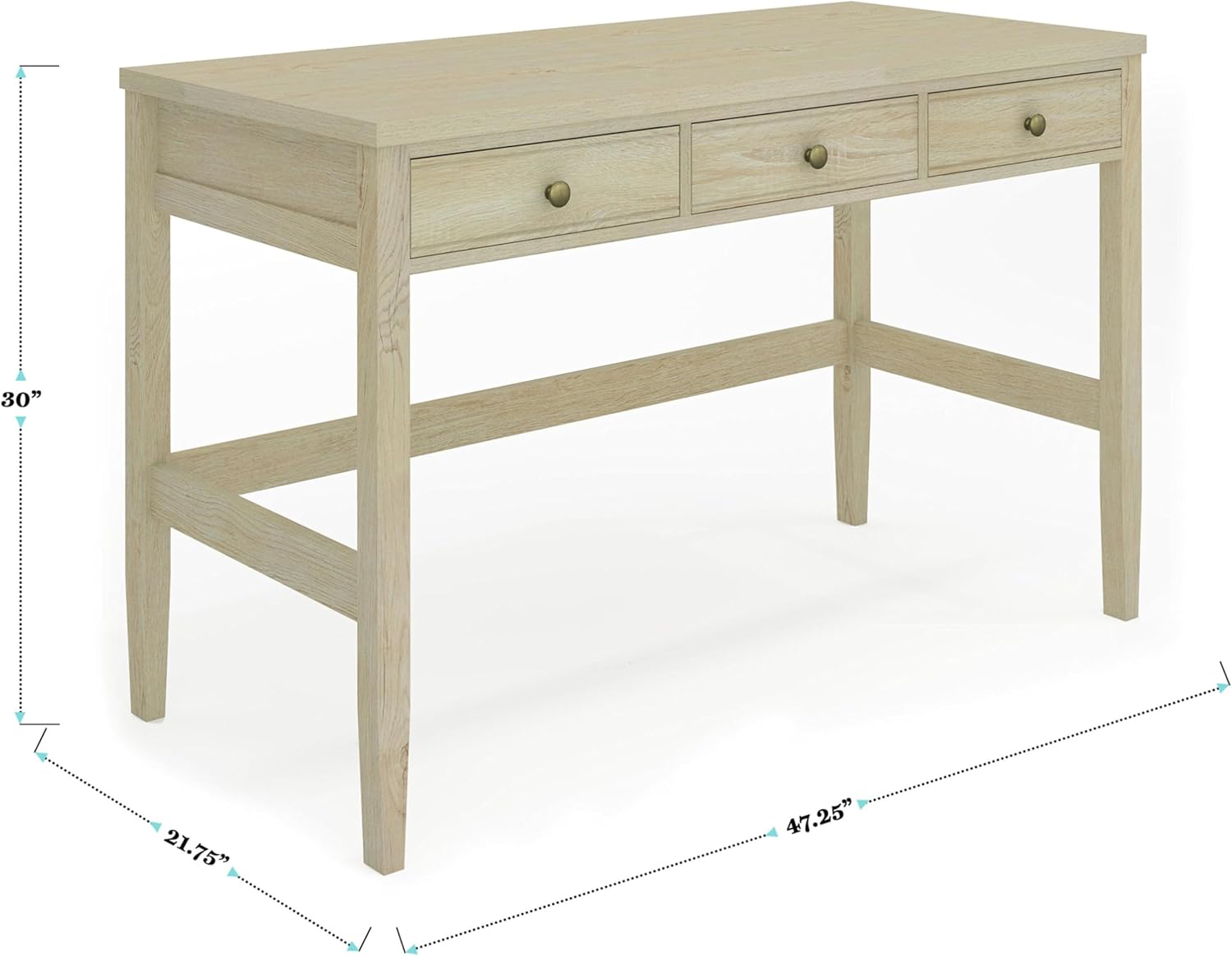 Upgrade your homes productivity hub with the Martha Stewart Rhett Home Office Desk. A simple but inspired design boasts complementary hardware and beautifully tapered legs to pair contemporary style with functionality in your home command center. Keeping your space neat and organized is hassle-free with three top pull-out drawers that deliver plenty of storage space. Assembly is easy with the included step-by-step instructions, and the drawer glides are pre-assembled to save time. Upkeep is a breeze by wiping clean with a damp cloth.