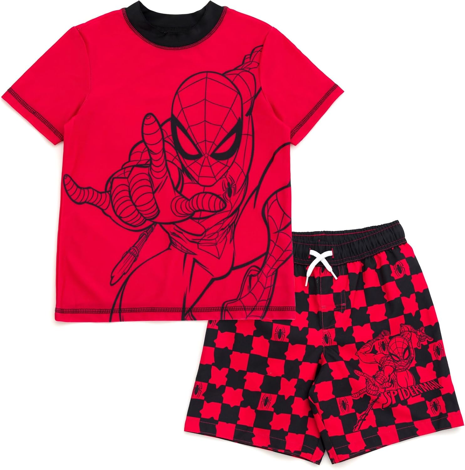 Get your little superhero ready for action with this Marvel UPF 50+ Rash Guard and Swim Trunks Outfit Set. Whether they're splashing in the pool or battling the waves at the beach, your child will be protected from harmful UV rays while showing off their favorite Marvel characters. This set, designed for toddlers to big kids, features bold graphics of iconic Spider-Verse, Marvel Rivals, and Avengers heroes like Spider-Man, Miles Morales, Captain America, Black Panther, Hulk, Thor, Iron Man, and Jeff the Shark, making every swim an epic adventure. Perfect for your little one’s summer escapades, this short sleeve rash guard shirt and shorts swim set is sure to be their go-to gear for all their water-based missions.