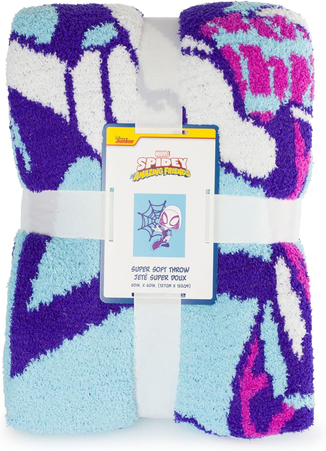 Unleash the superhero within with the Ghost Spider 50x60 Inch Feather Knit Throw Blanket, featuring Gwen Stacy from Spidey and His Amazing Friends. Made from ultra-soft feather knit fabric, this blanket is perfect for keeping warm and cozy while showcasing your favorite Marvel character. With its bold design of Ghost Spider, this throw adds a touch of action-packed excitement to any bedroom, living room, or play space. The generous 50x60 inch size is ideal for both kids and adults, making it perfect for lounging at home, watching TV, or even as a travel blanket. Its lightweight and warm construction make it versatile for all seasons, while the easy-care machine washable fabric ensures it stays soft and bright wash after wash. Whether you’re a long-time fan of the Spidey and His Amazing Friends series or know someone who is, this Ghost Spider blanket is the perfect way to bring a little superhero magic into everyday life. Add it to your Marvel collection or gift it to a fellow superhero enthusiast!