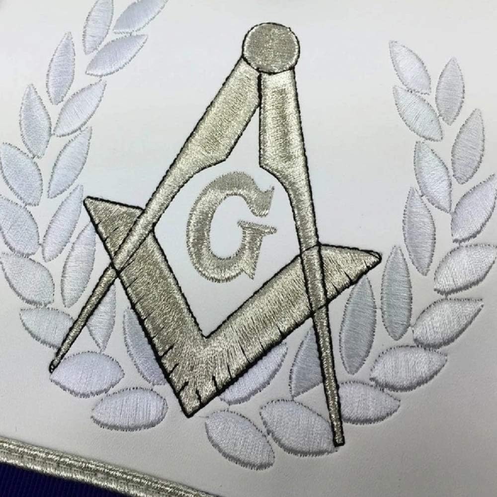 Masonic Blue Lodge Master Mason Apron Set Apron, Collar gauntlets (Cuffs) Past Master Mason Apron High Quality Blue Lodge Past Master Apron Adjustable belt with Silver plated snake̴ fitting Finest quality Blue ribbon Finest quality Machine Embroidery Pocket at the rear and soft padding Past Master Mason Collar Finest quality Embroidery Stitched metal hook for attachment to collar Clipper attachment of jewel Gauntlets High quality Gauntlets Machine Embroidery